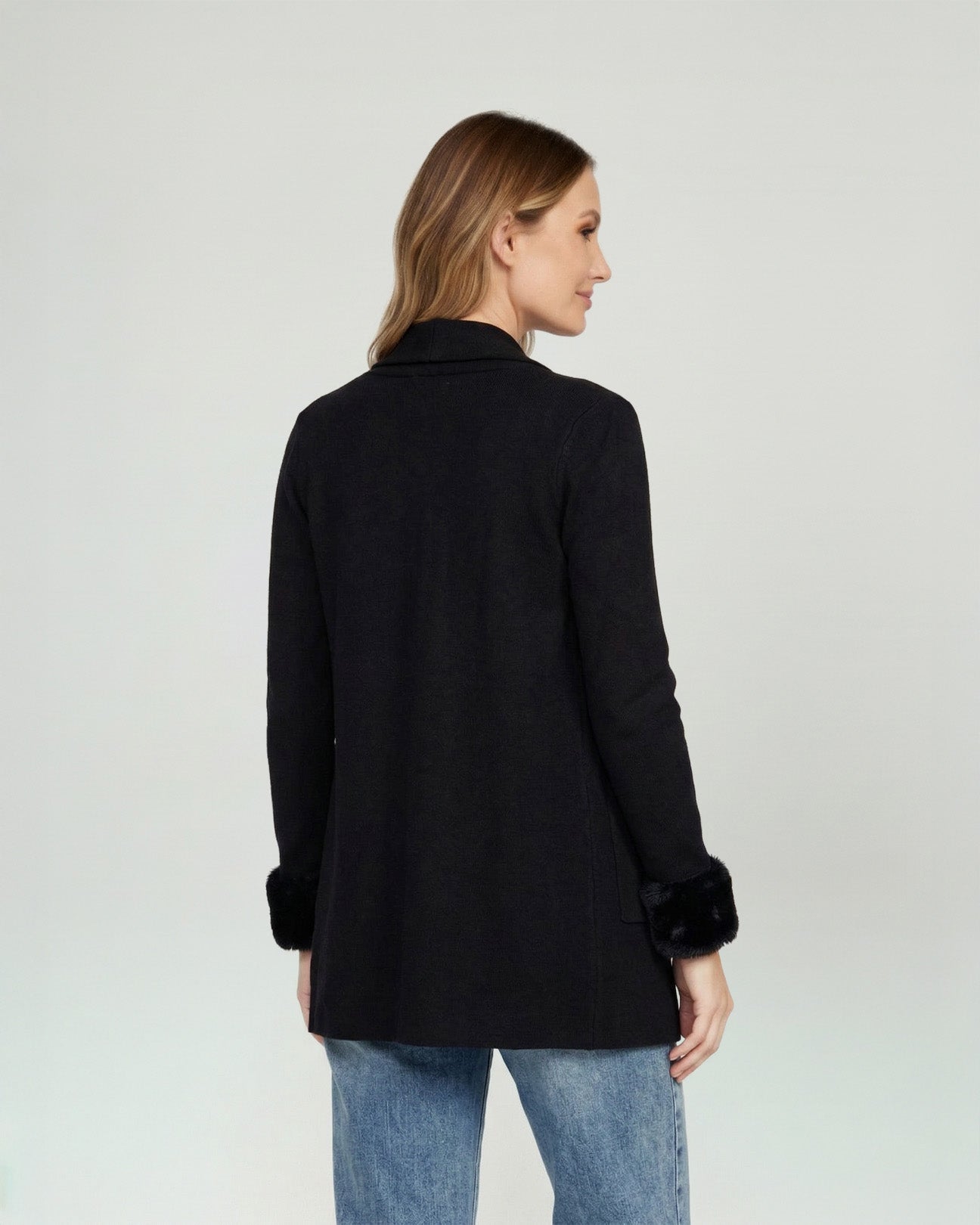 Cardigan Mujer Renata Relaxed Cuello Con Solapa Manga Acampanada Negro Lineatre