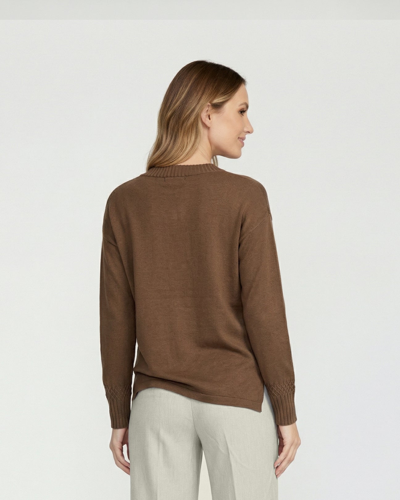 Envuelve tus días de invierno en calidez y estilo con este sweater café de Lineatre. Su textura suave y diseño atemporal lo convierten en un imprescindible para combinar con pantalones, faldas o denim. Pertenece a la colección Otoño-Invierno 2026 de Lineatre, inspirada en la elegancia natural de la moda italiana y pensada para la mujer que busca verse sofisticada sin esfuerzo.