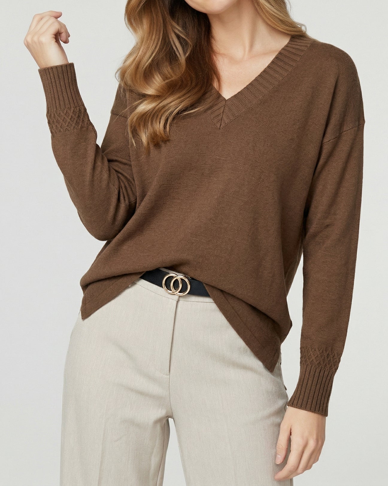 Sweater Mujer Giovanna Relaxed Cuello En V Manga Caída Chocolate Lineatre