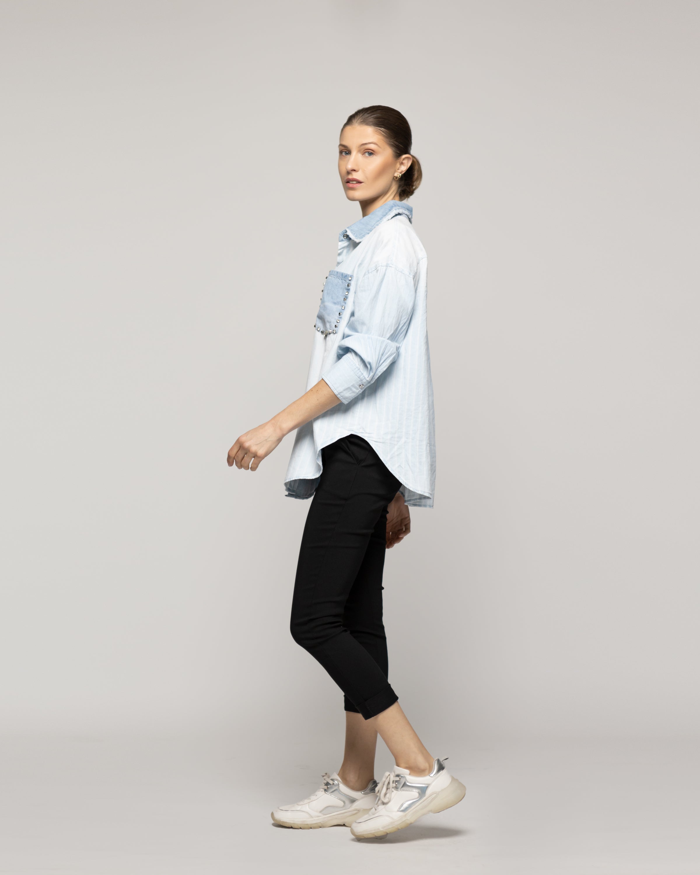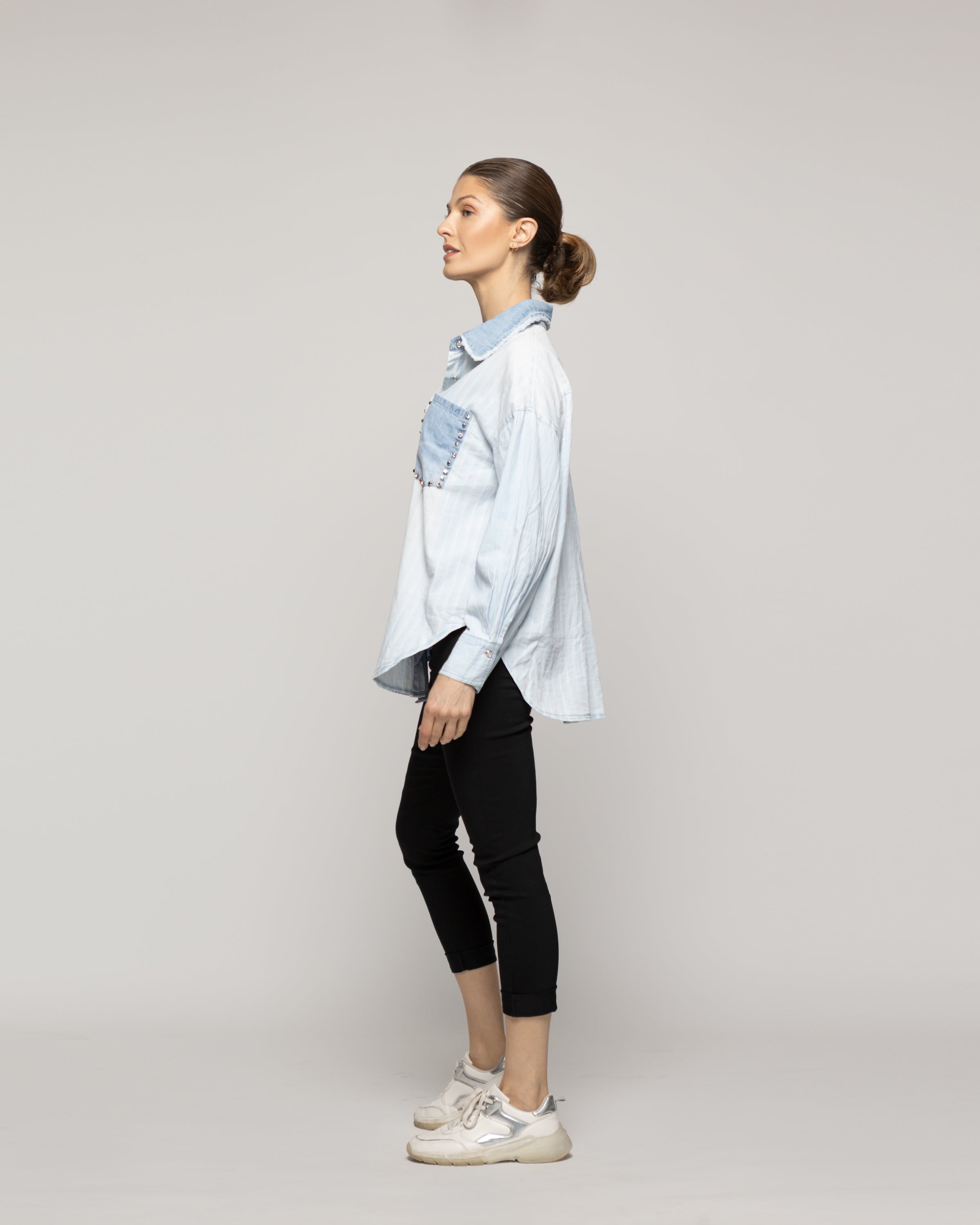 Camisa Mujer Lorenza Jeans Con Tachas Bicolor Lineatre
