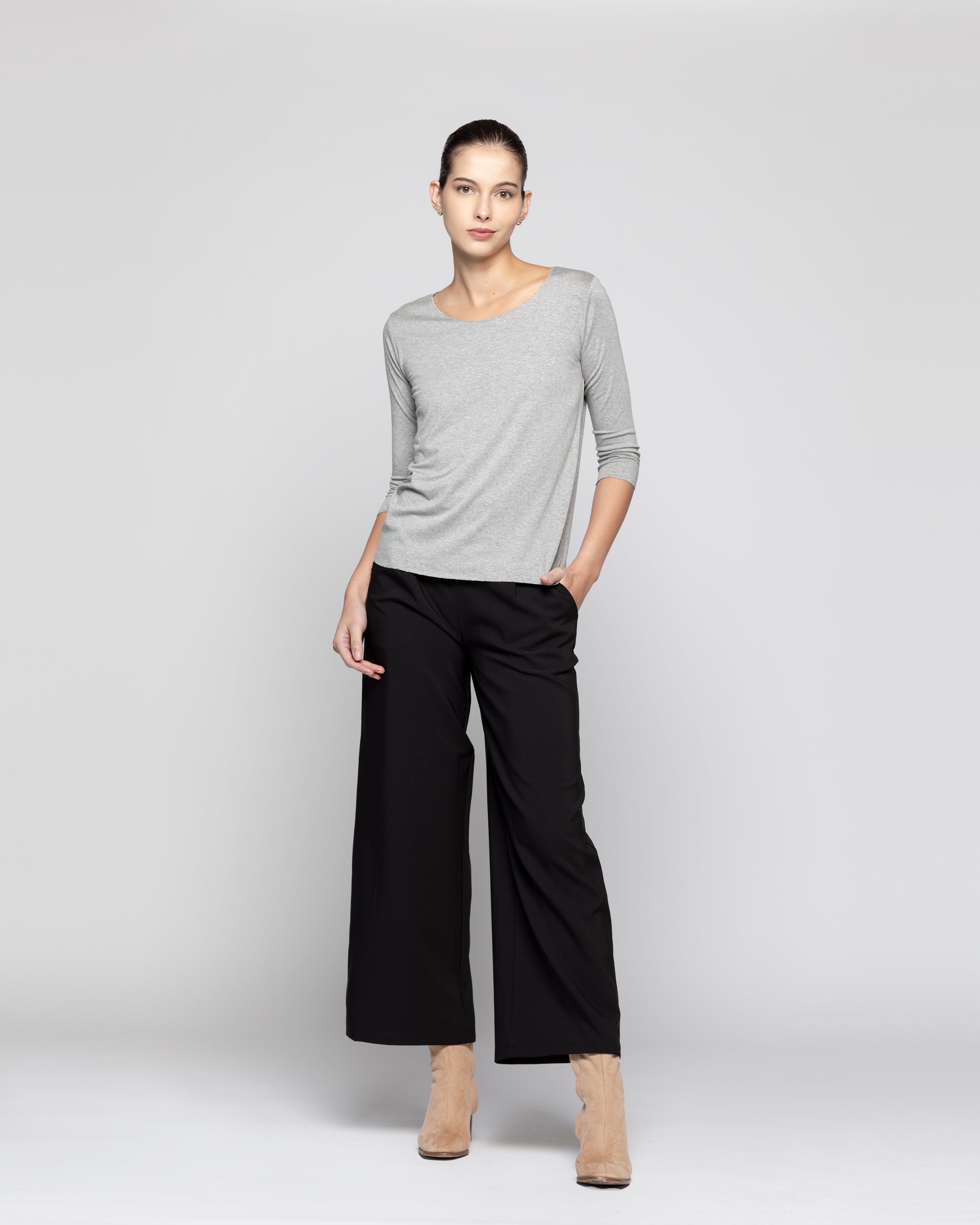 Polera básica color gris manga 3/4 con calce regular. Detalle de hilo brillante en orillas de puño, cuello y base. Con carácter propio para destacar sin esfuerzo.