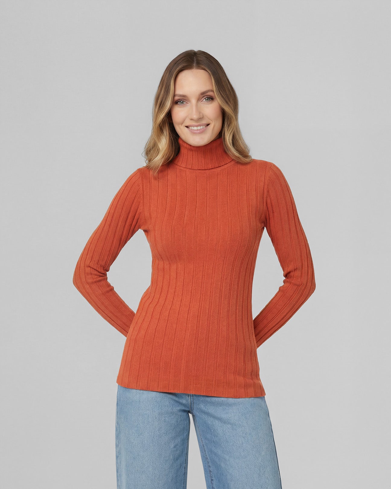 Sweater Mujer Josefa Slim Fit Cuello Alto Redondo Manga Ajustada Naranjo Lineatre