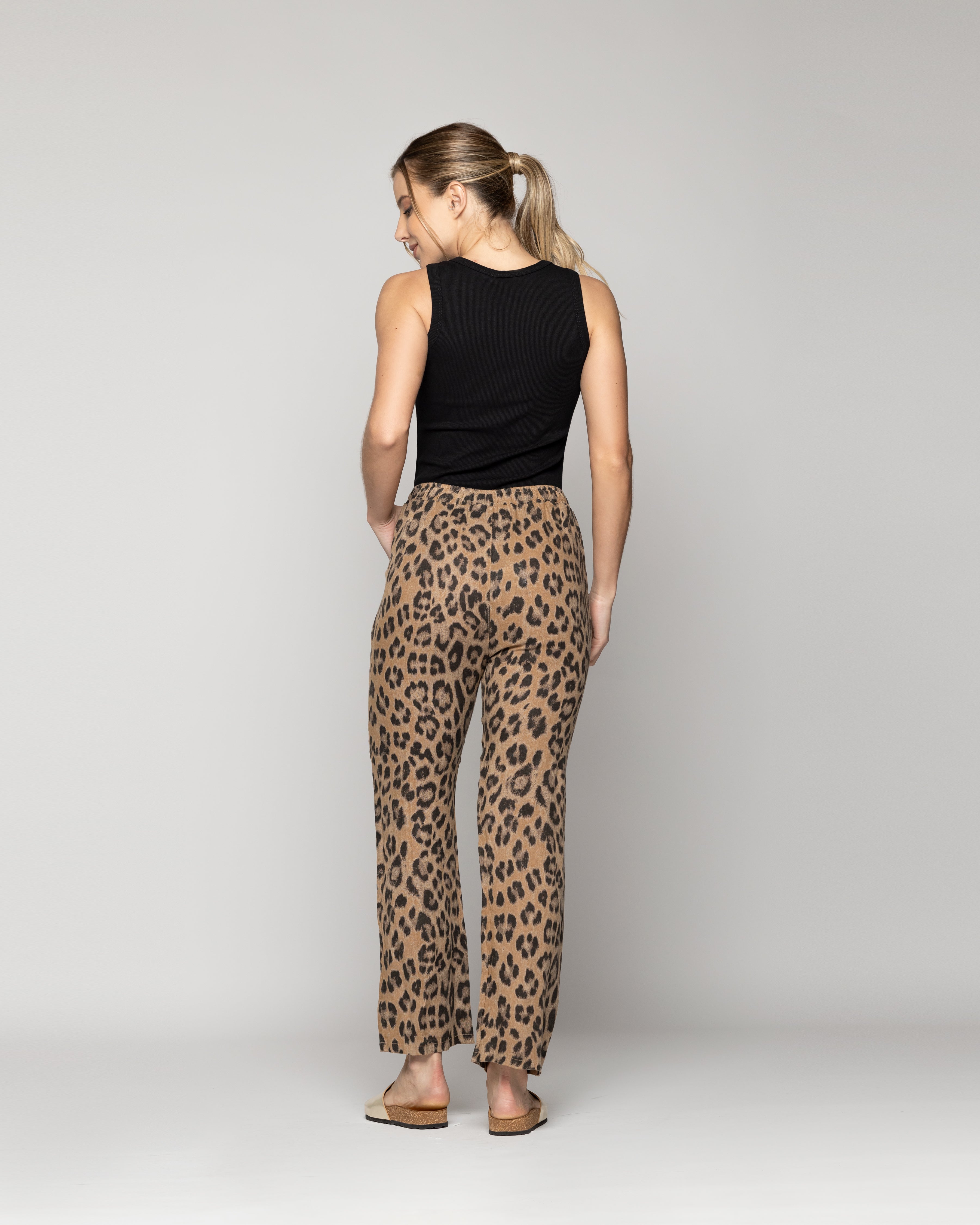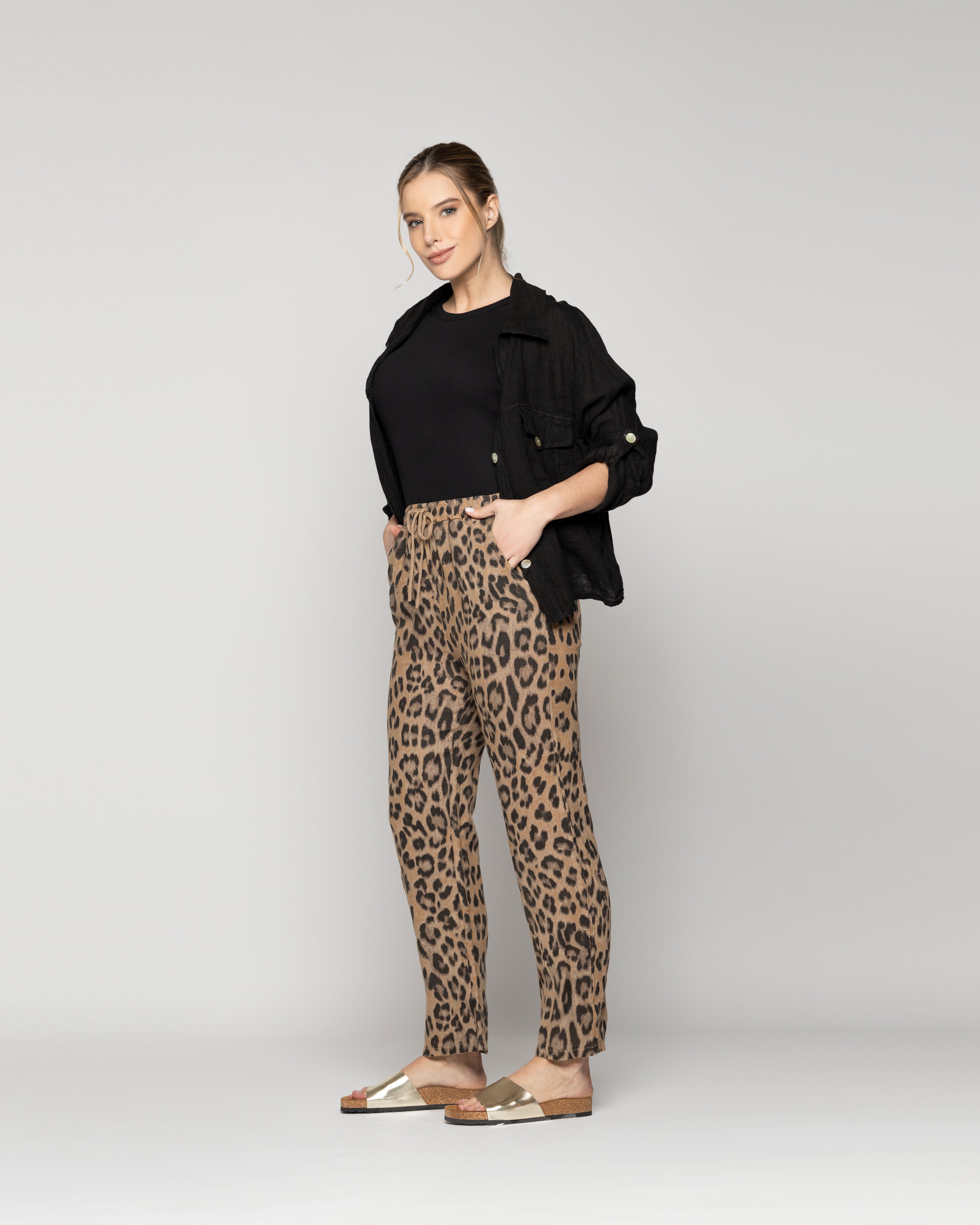 Pantalón Mujer Paz De Lino Elasticado Leopardo Lineatre