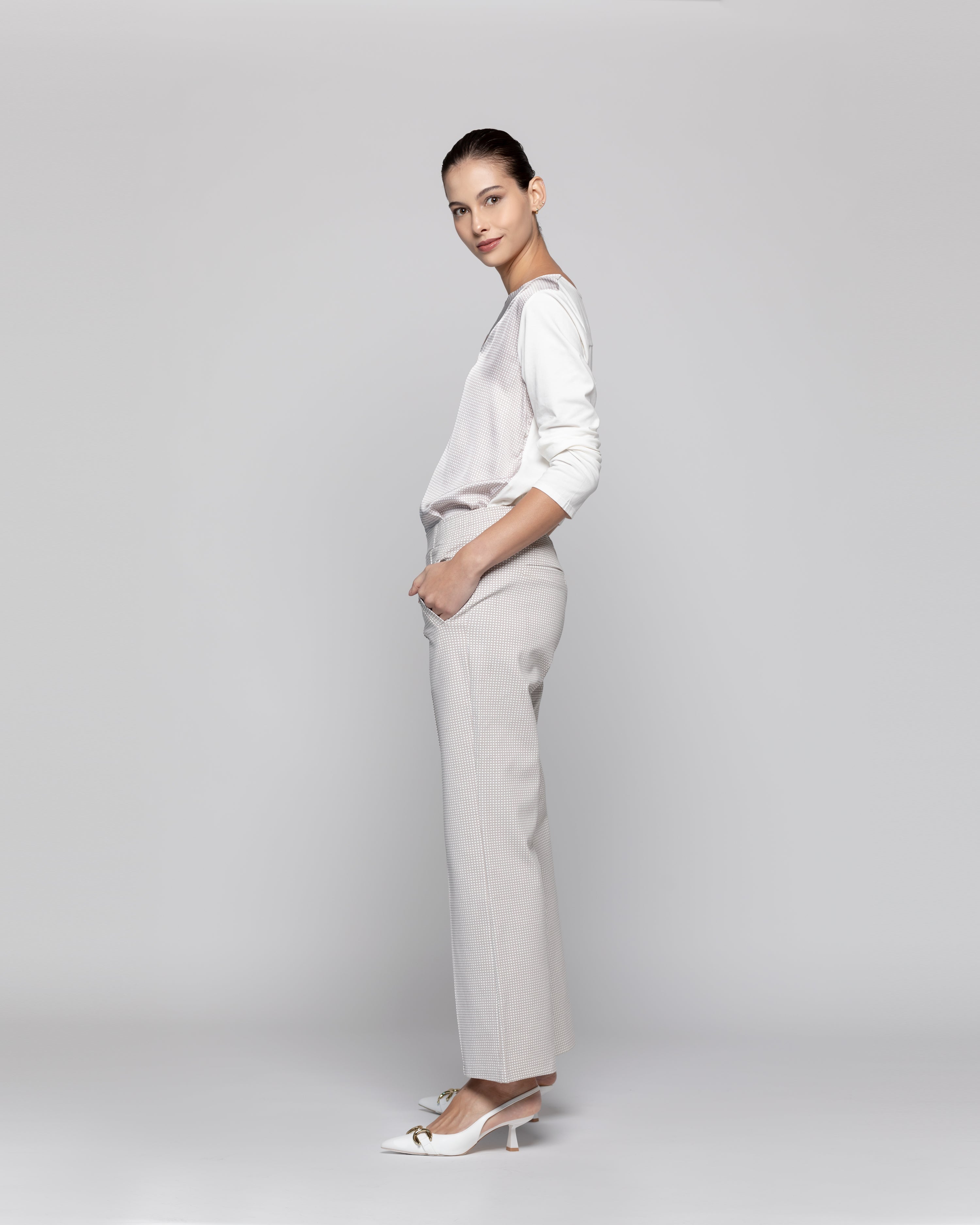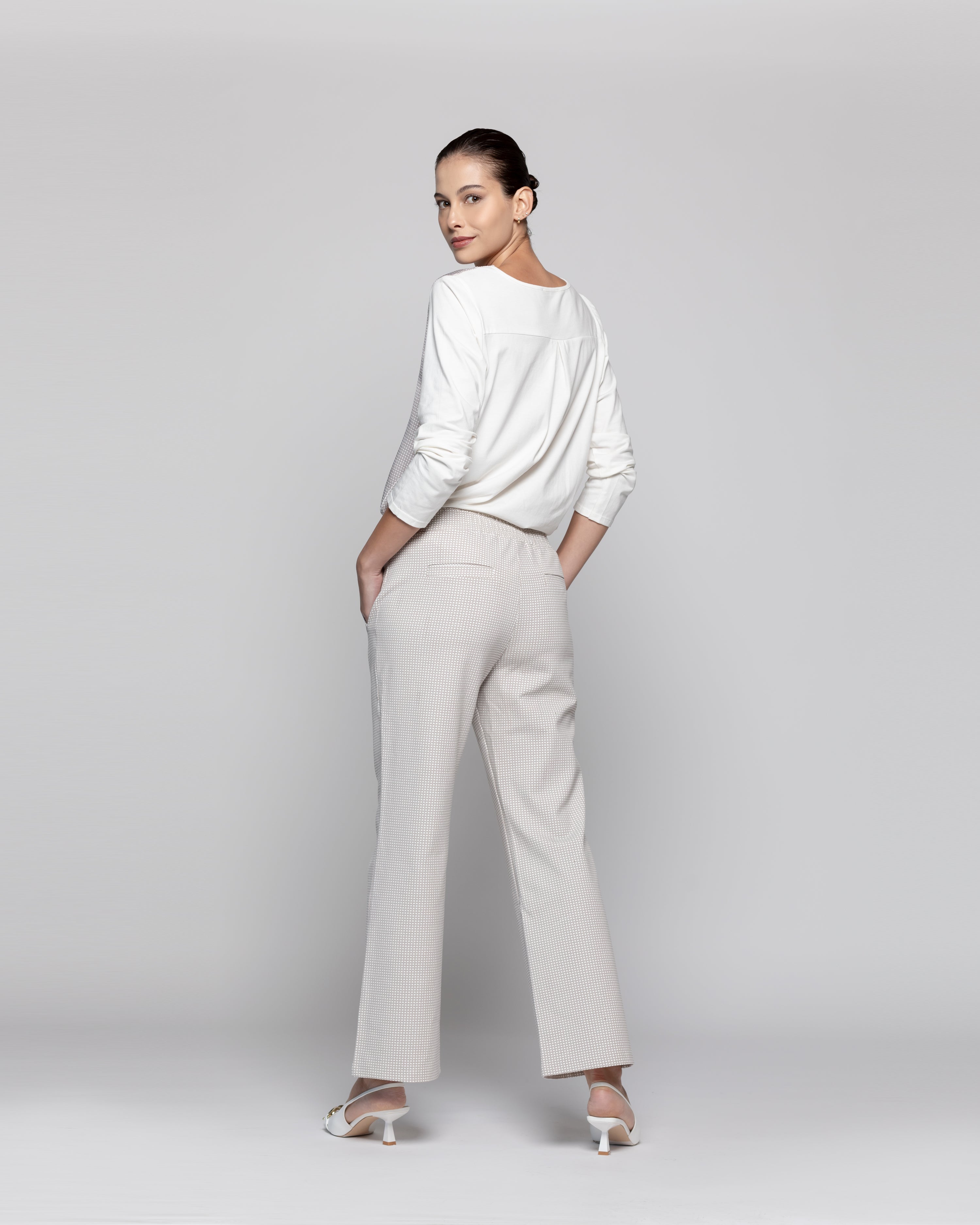 Pantalón color blanco crudo con diseño. Calce regular y ajuste elástico. Hecha para quienes saben llevar lo suyo con actitud.
