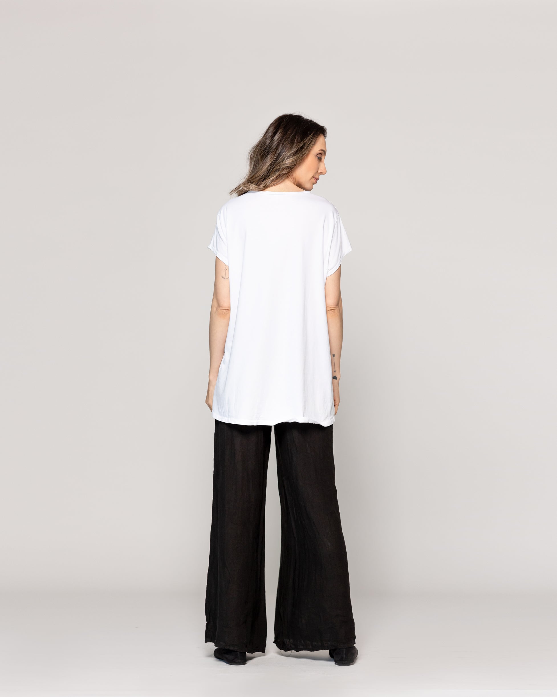 Polera Mujer Odelia Estampado Íconos Retro Blanca Lineatre