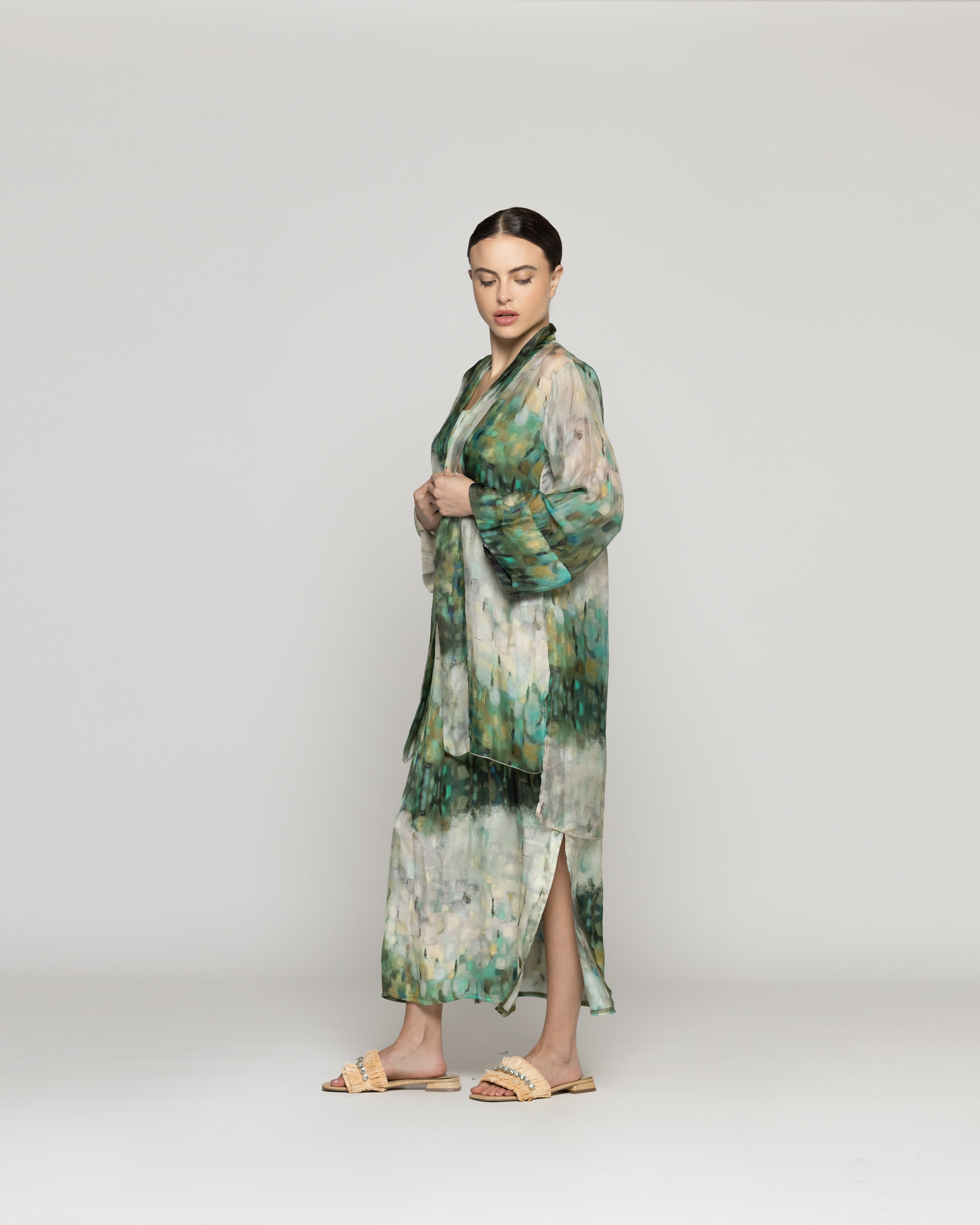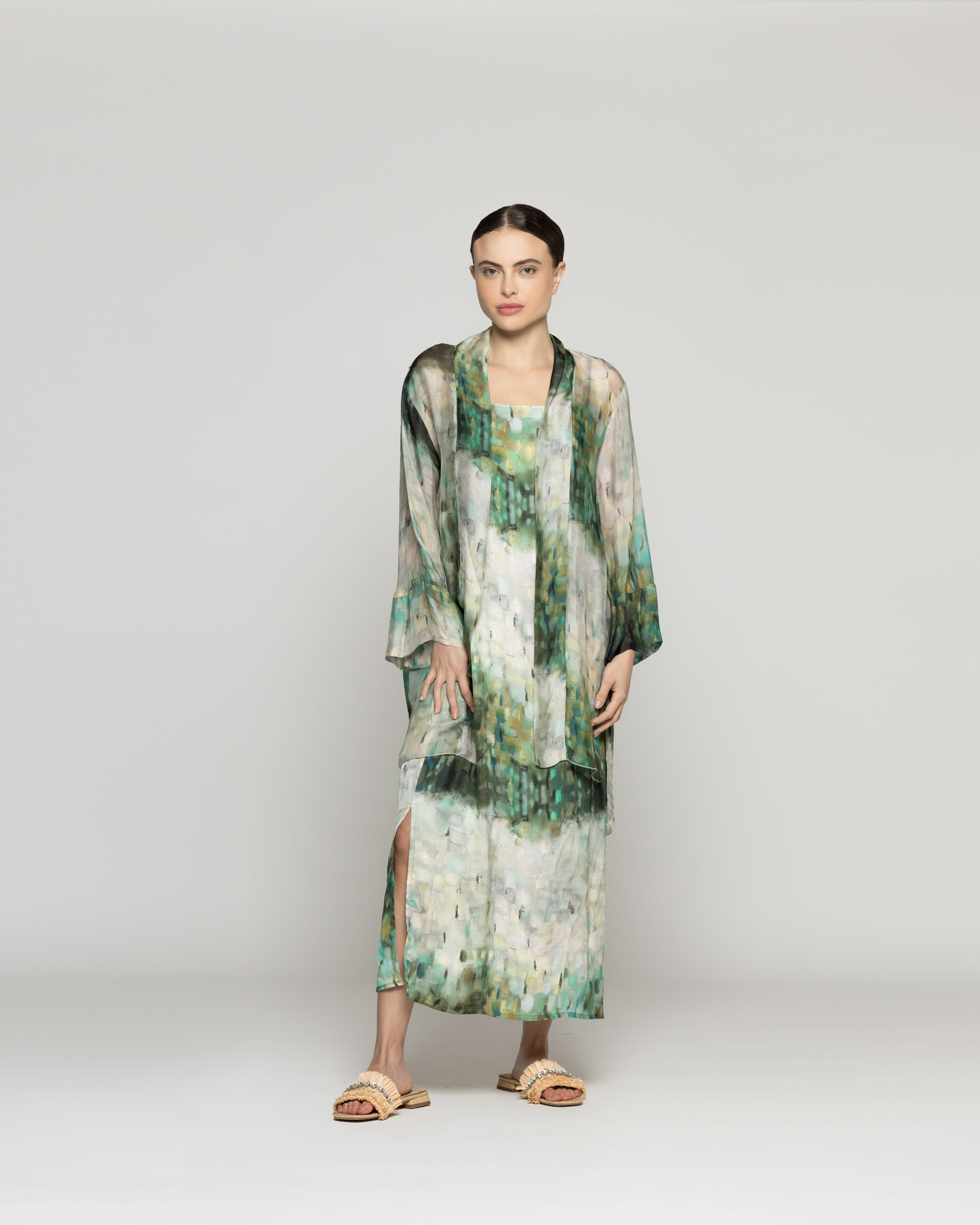 Tapado Mujer Spolverino Dafne Verde Estampado Lineatre