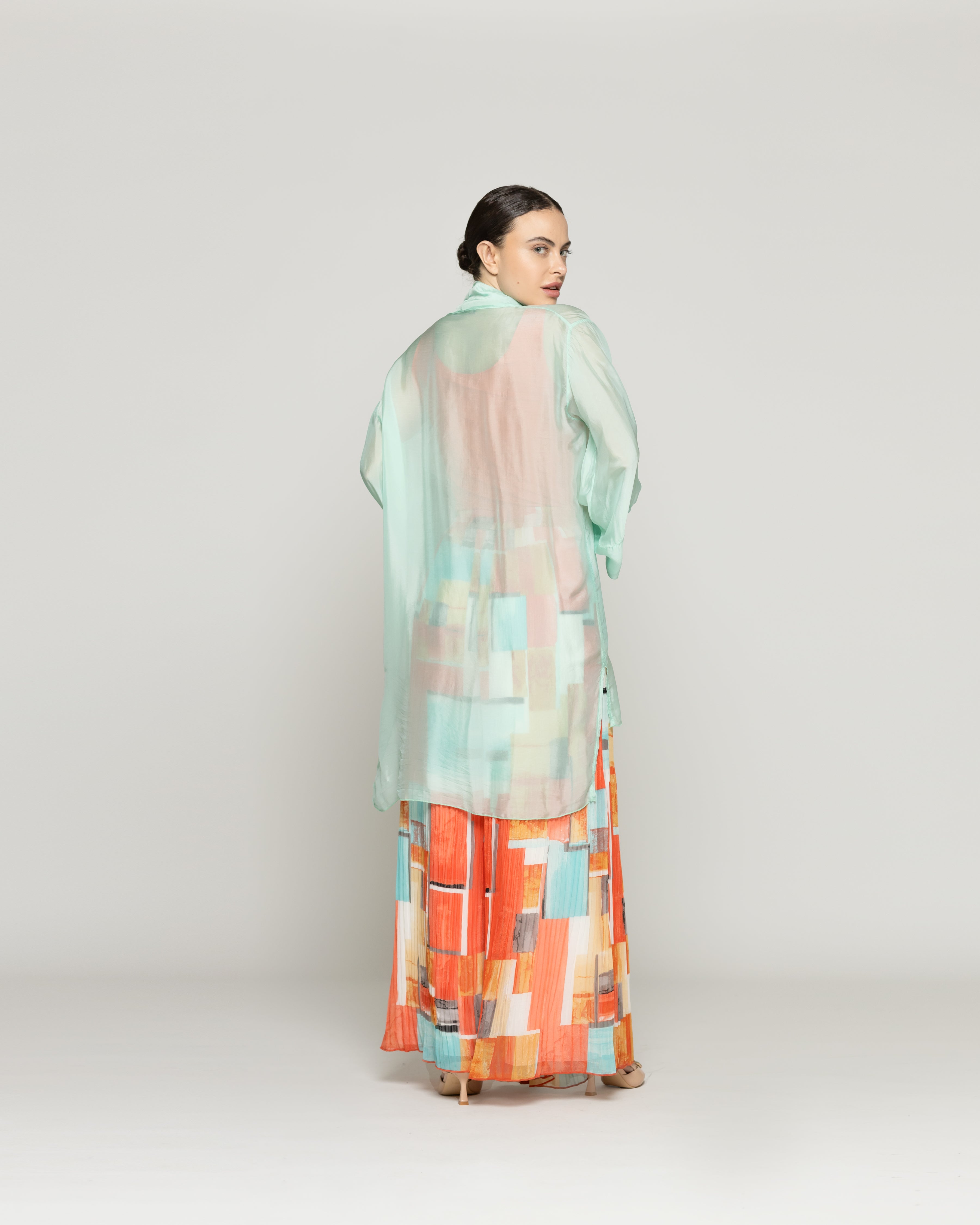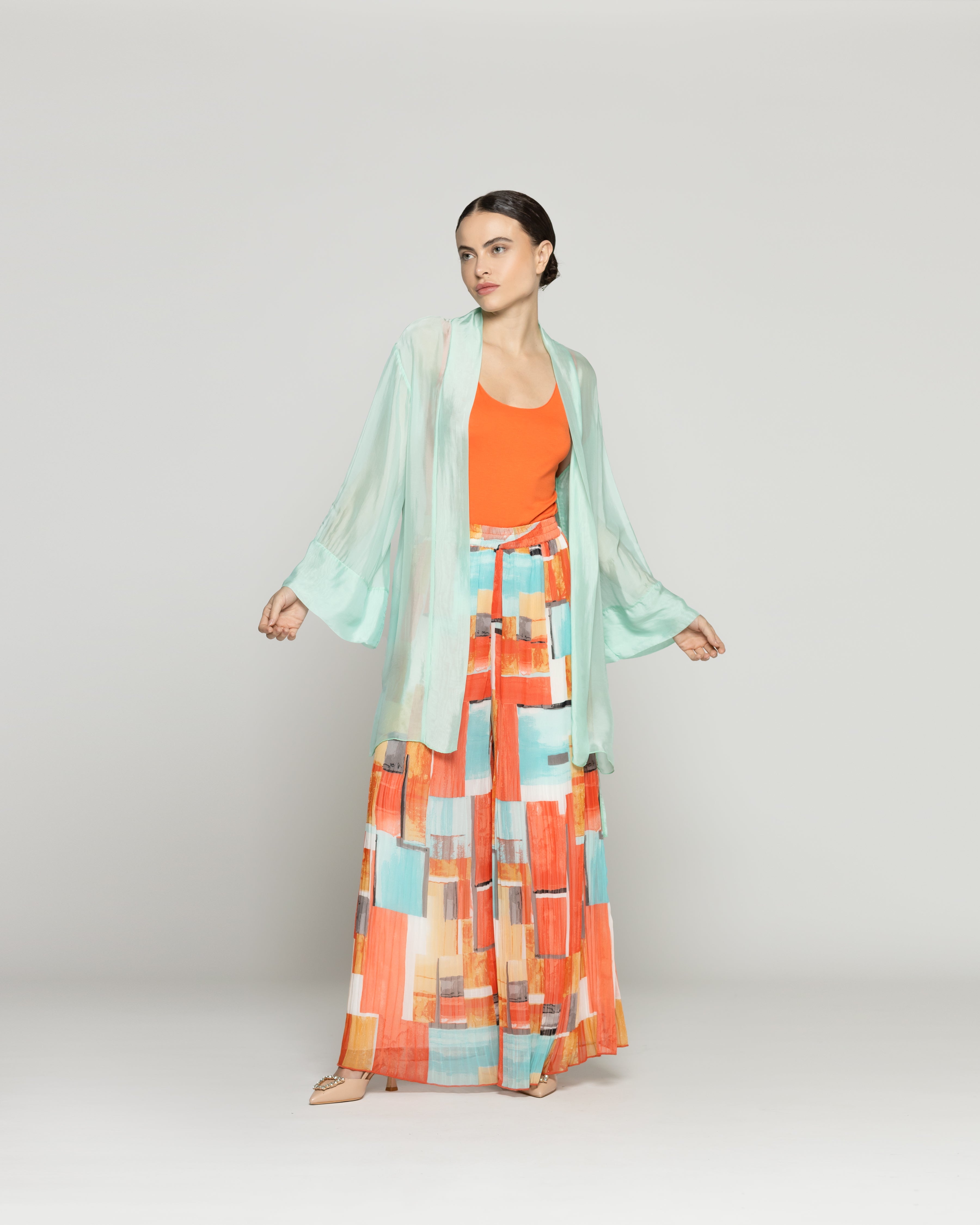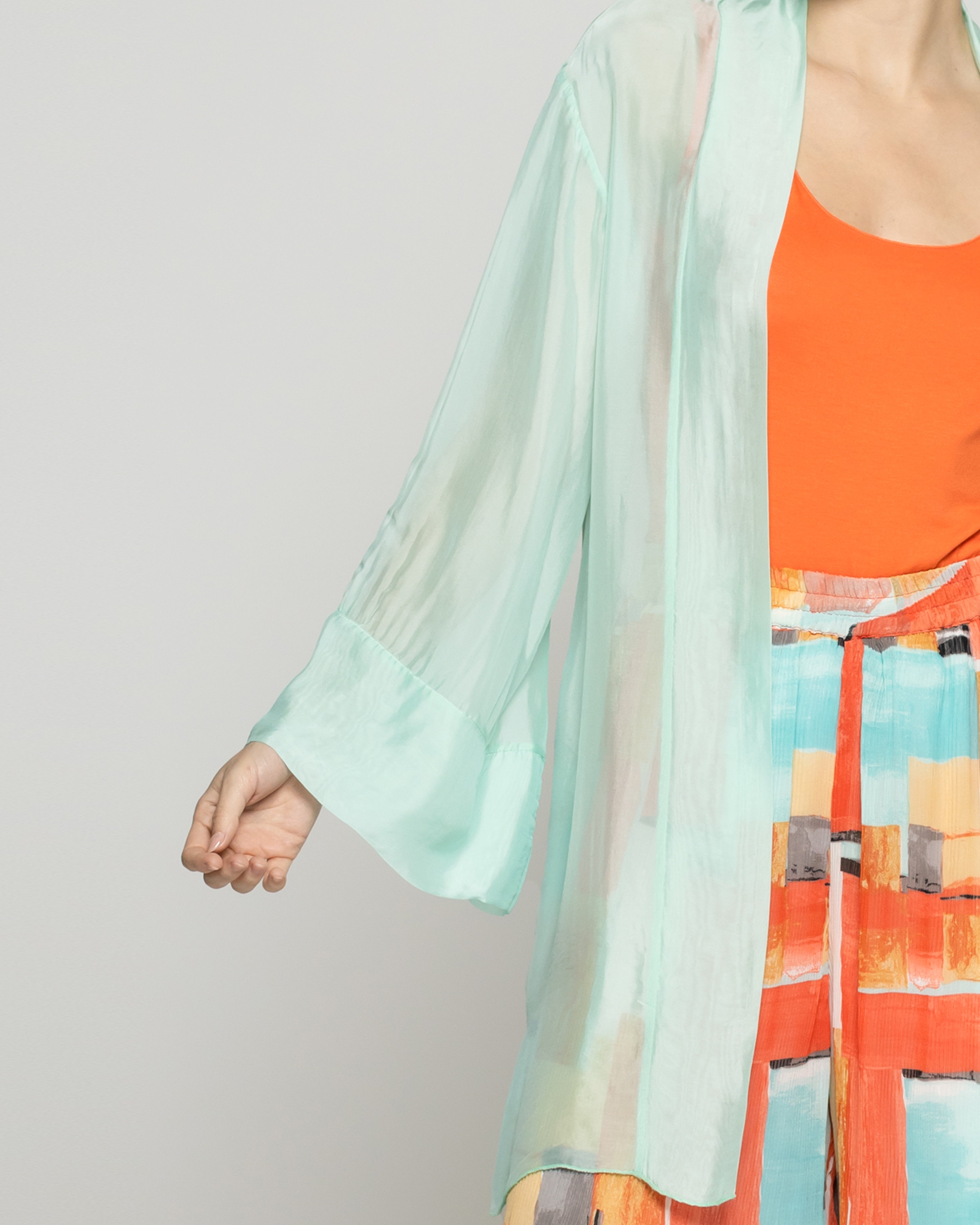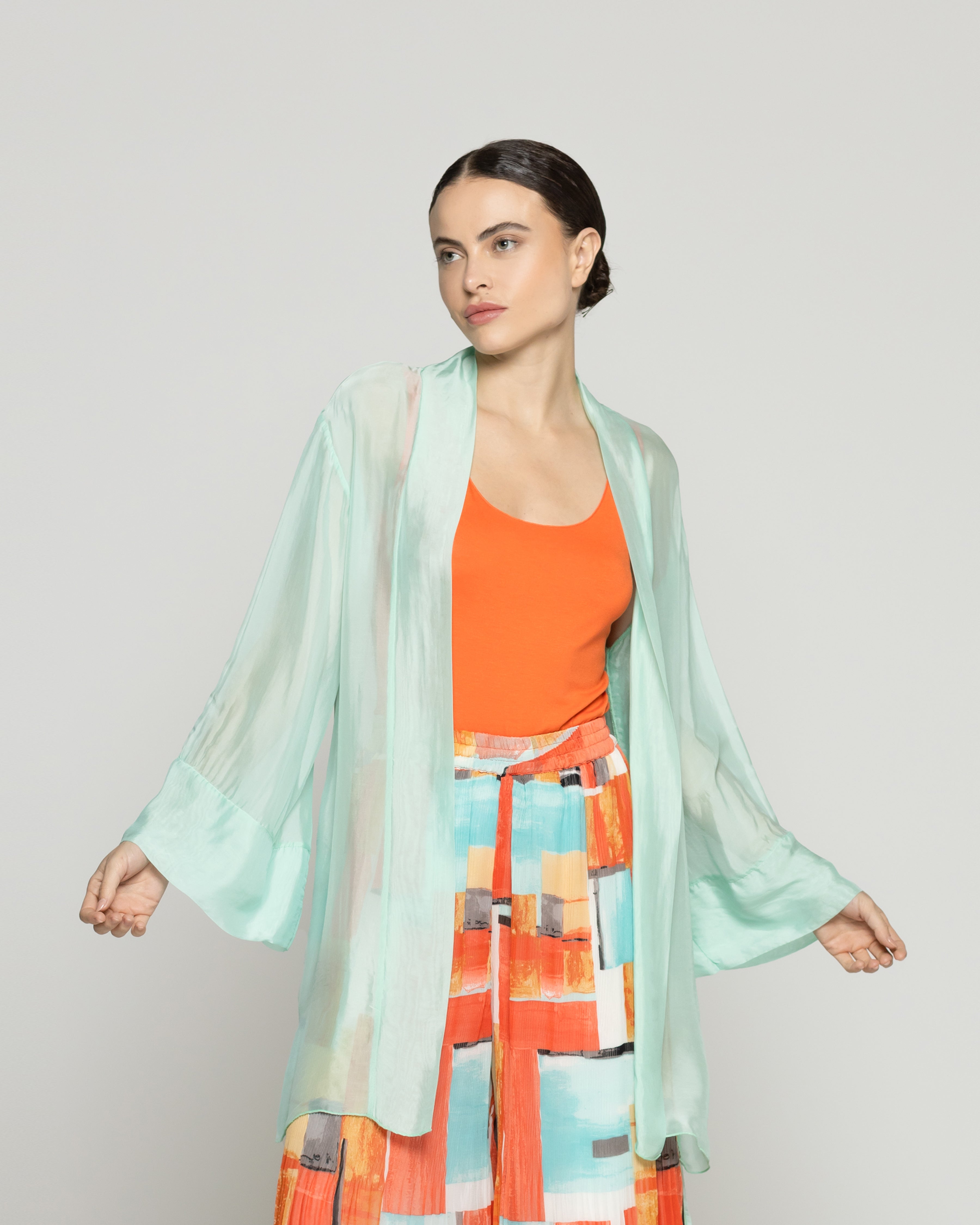 Dafne es un spolverino Lineatre que combina estilo y comodidad con un aire sofisticado. Un tapado de color liso y con transparencia. Su diseño liviano y fluido lo convierte en una prenda perfecta para capas ligeras durante la temporada. Ideal para complementar atuendos de día o elevar un look sencillo, su confección cuida cada detalle para ofrecer una caída elegante y natural. Lo puedes combinar con pantalones estampados o jeans rectos para un look relajado pero también le agrega elegancia a vestidos de la misma textura. La viscosa aporta fluidez y frescura, mientras la seda suma un brillo sutil y una sensación delicada sobre la piel. Una prenda ligera, elegante y envolvente.