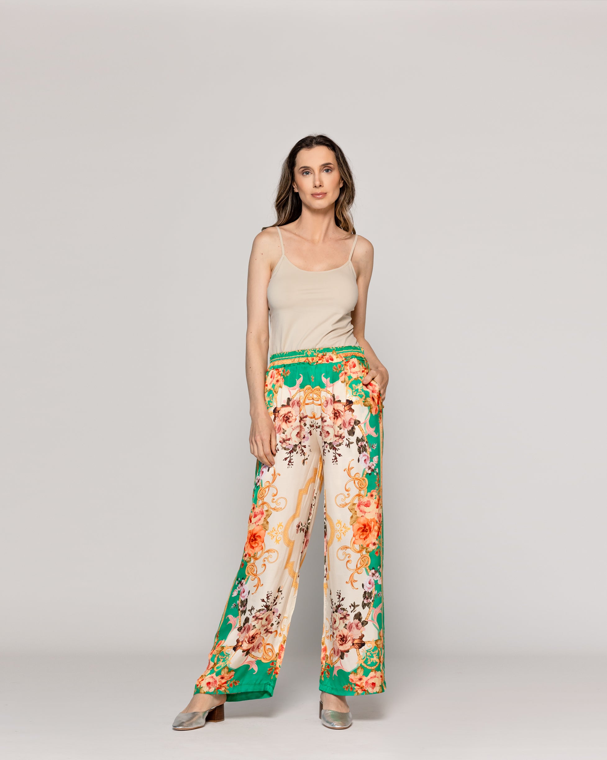 Pantalón Mujer Brenna Satinado Estampado Barroco Verde Lineatre
