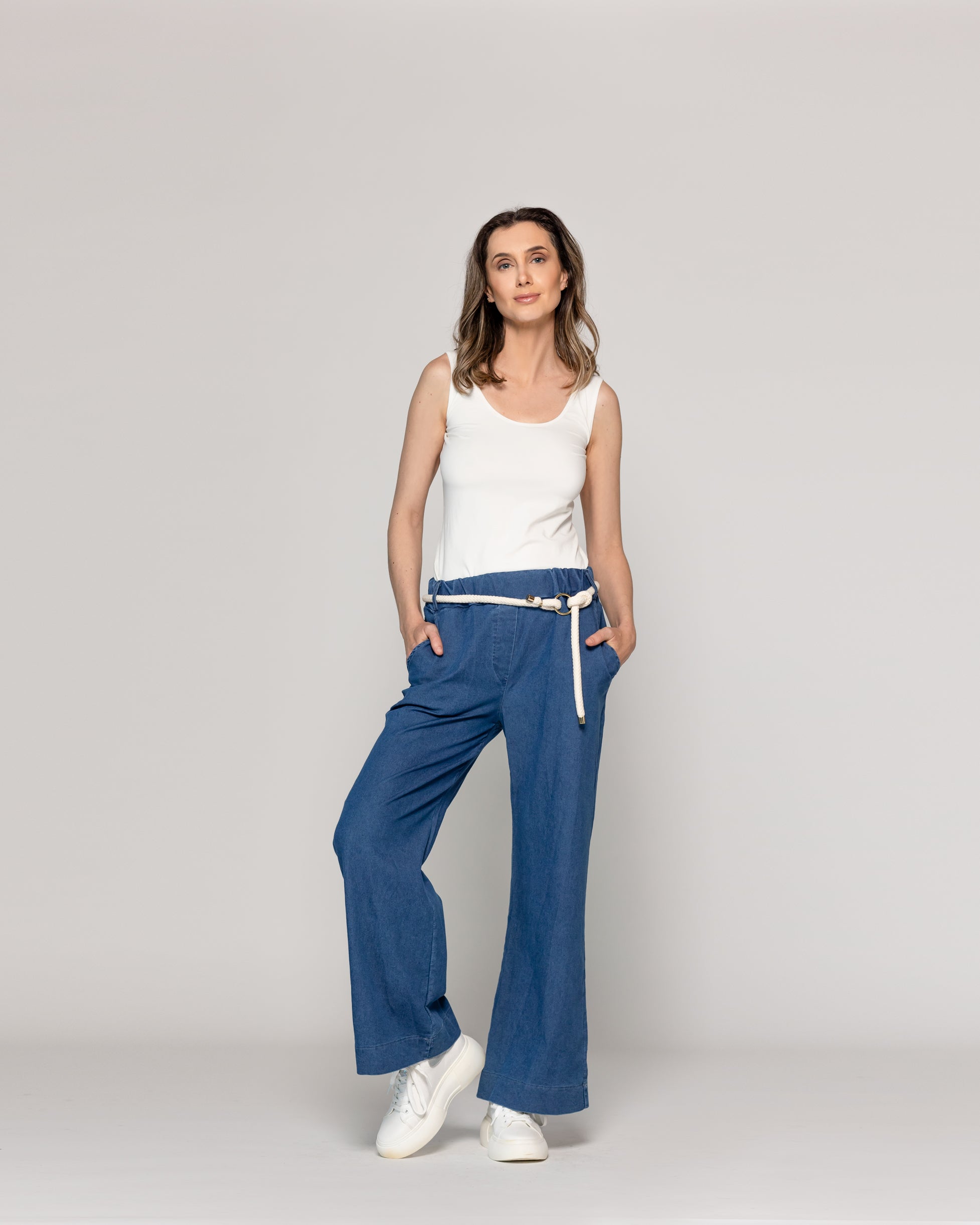 Pantalón Mujer Pascuala Con Cinturón Azul Lineatre