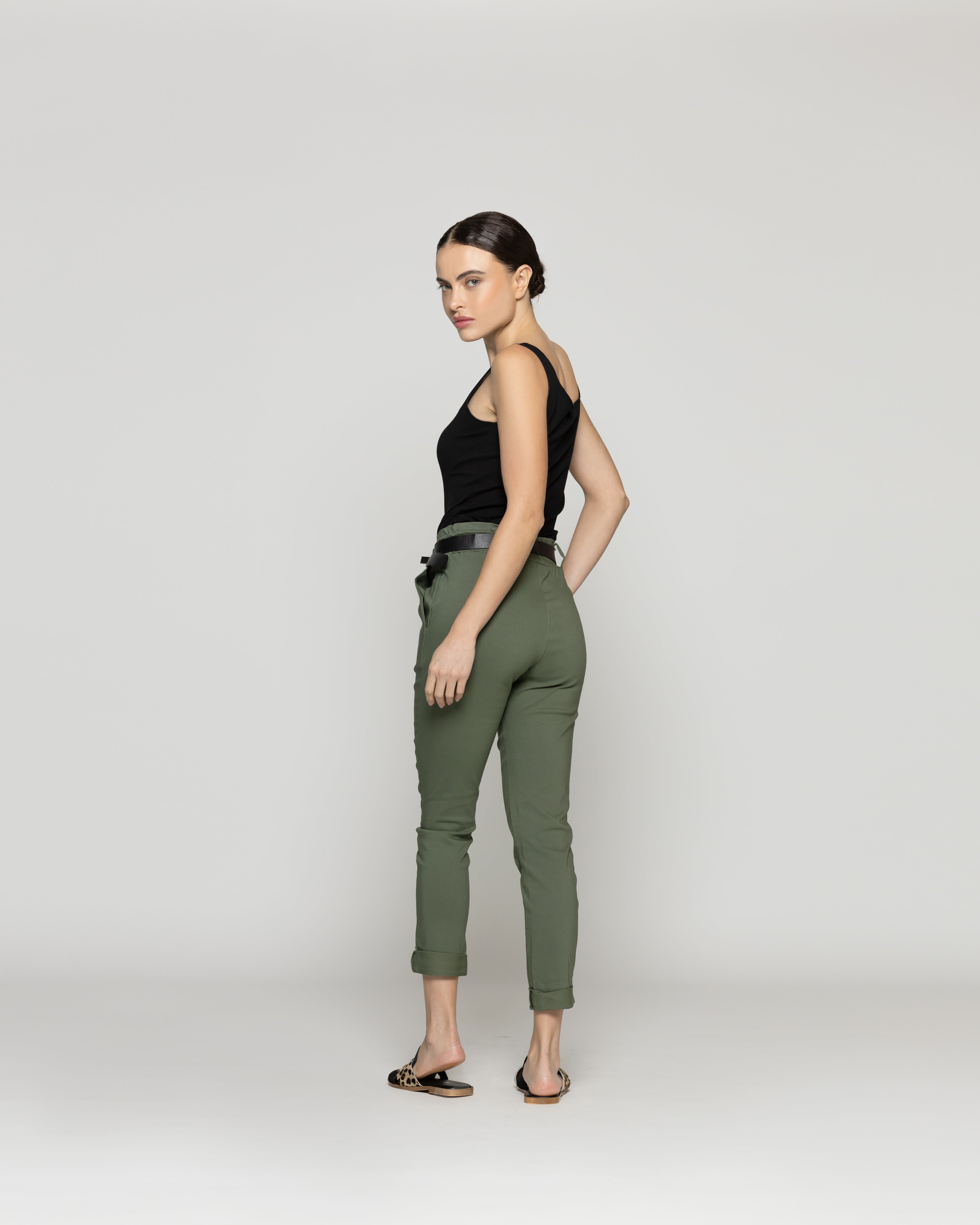 Pantalón Mujer Petra Pitillo Con Cinturón Verde Militar Lineatre