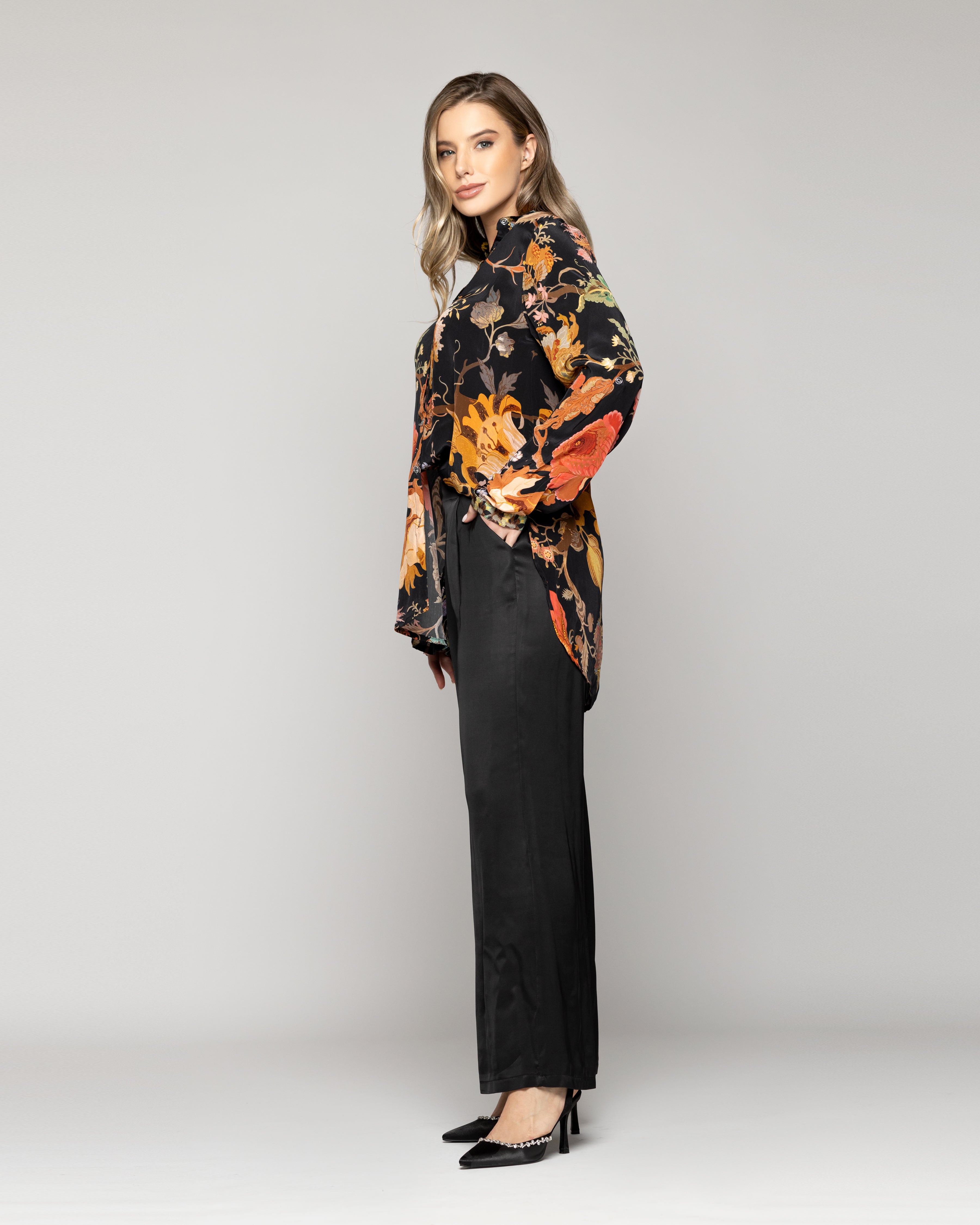 Pantalón Mujer Philippa Recto Satinado Negro Lineatre