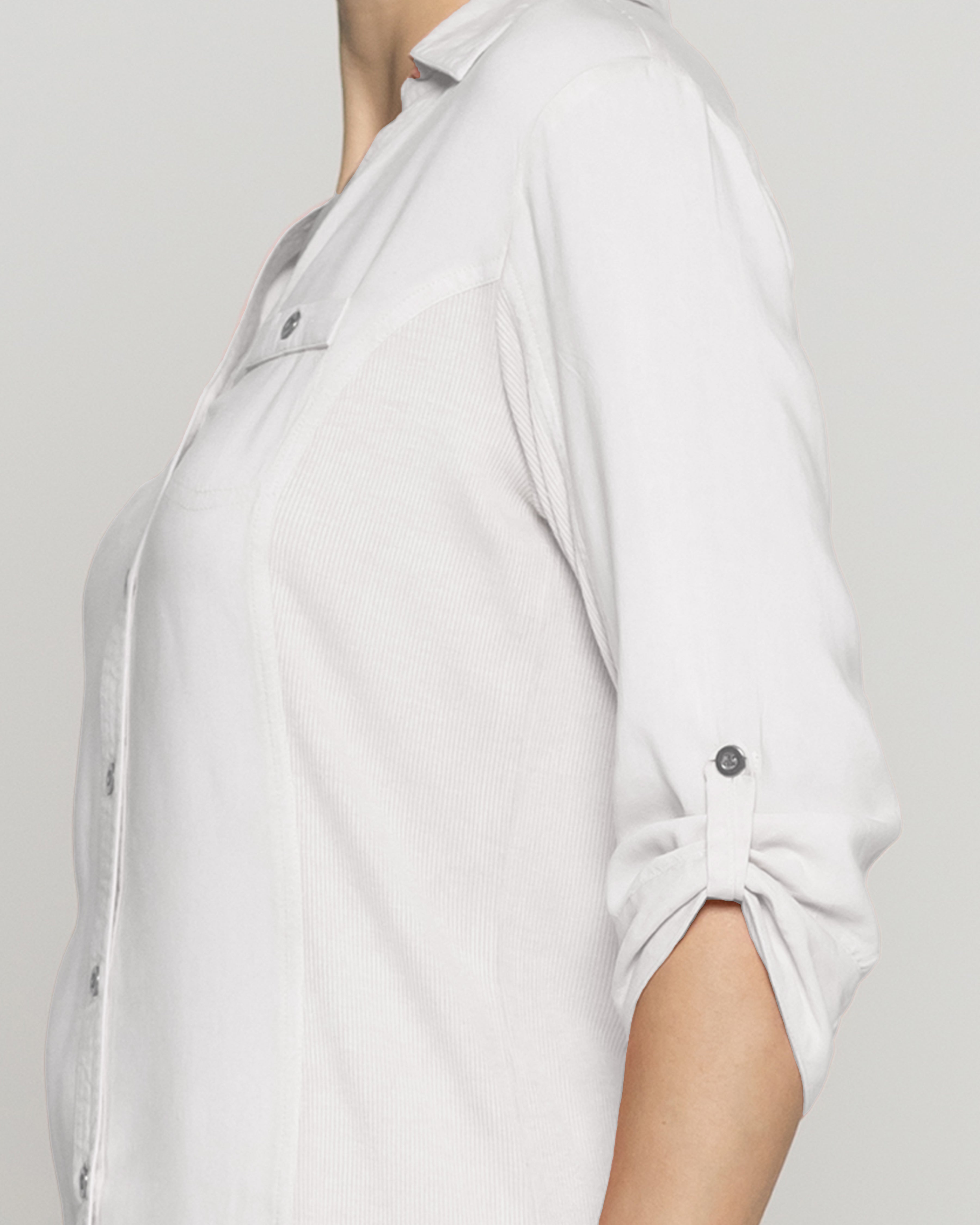 Fresca, funcional y con un toque casual elegante, la blusa Carolina es un impresindible de Lineatre. Ofrece una silueta semi ajustada con tela elasticada en los costados, cuello clásico tipo camisero, abotonadura frontal y doble bolsillo decorativo con solapa en el pecho. Las mangas largas con opción de arremangar mediante trabilla y botón la hace adaptable a distintas estaciones y estilos. Ideal para combinar con jeans, pantalones blancos o faldas midi. Esta blusa logra un equilibrio entre lo relajado y puliddo, ideal tanto para oficina como para salidas informales. Disponible en varios colores.
