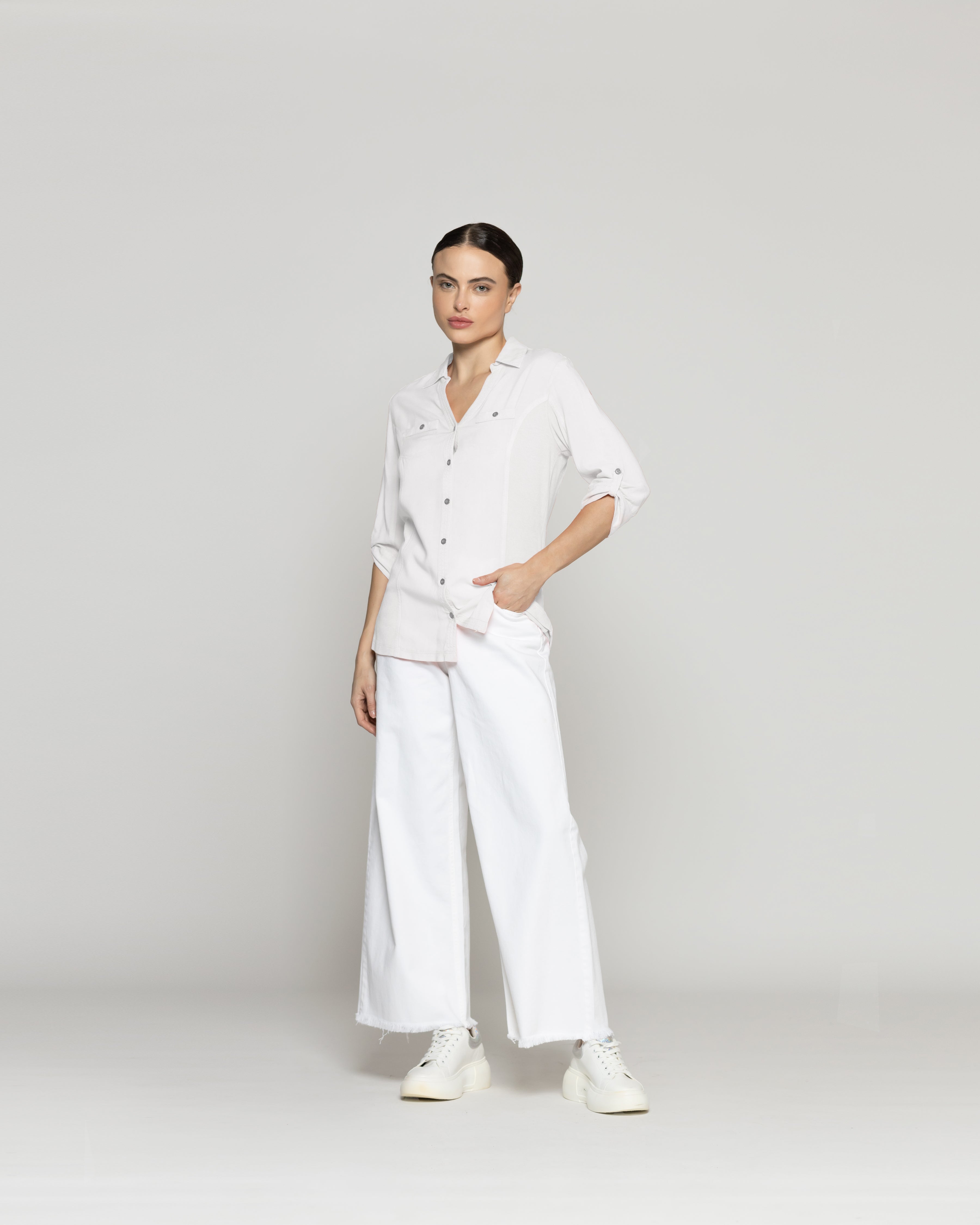 Blusa Mujer Carolina Slim Fit Tela Ligera Blanco Crudo Lineatre