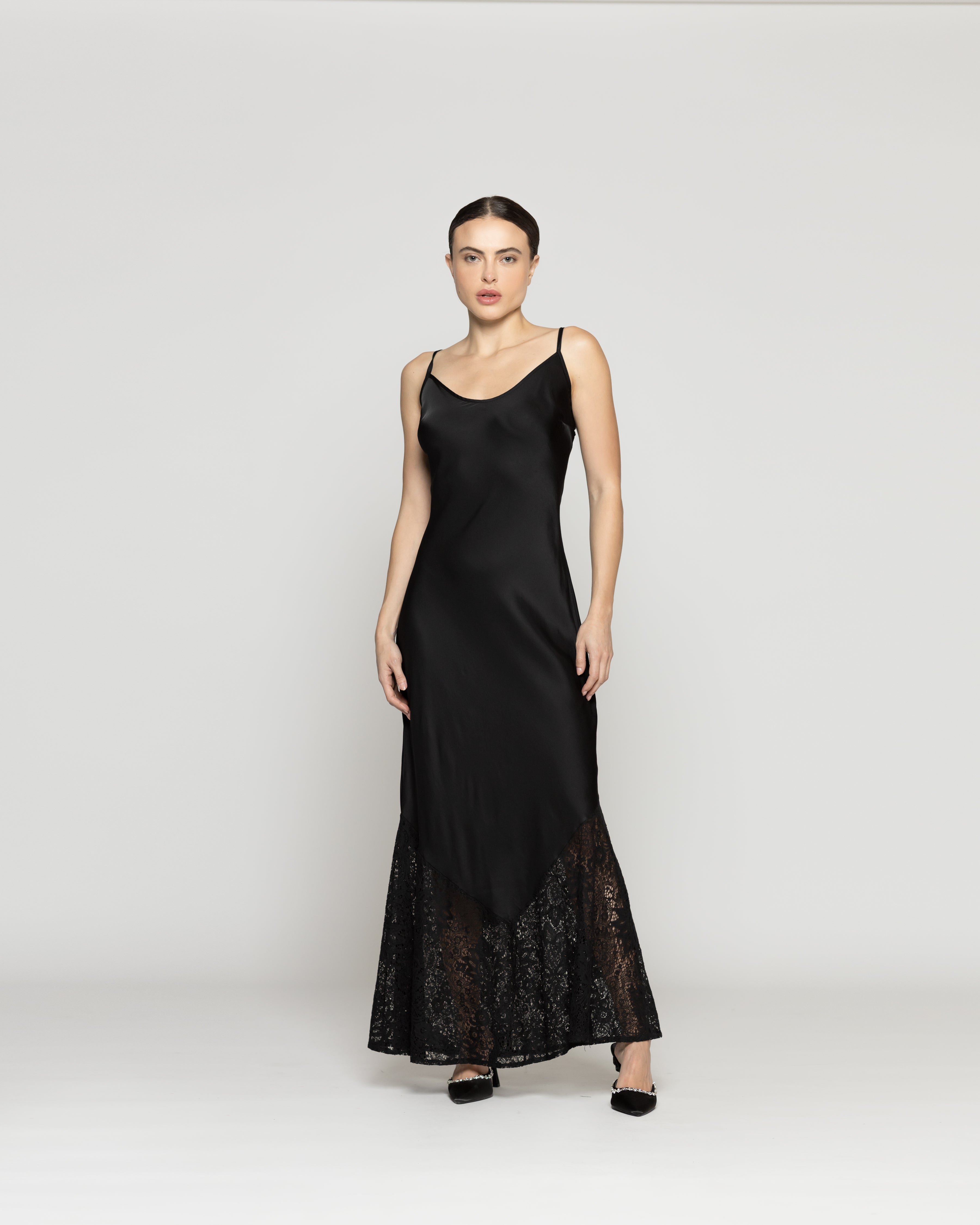 Vestido Mujer Violaine Satinado Con Encaje Negro Lineatre