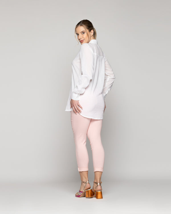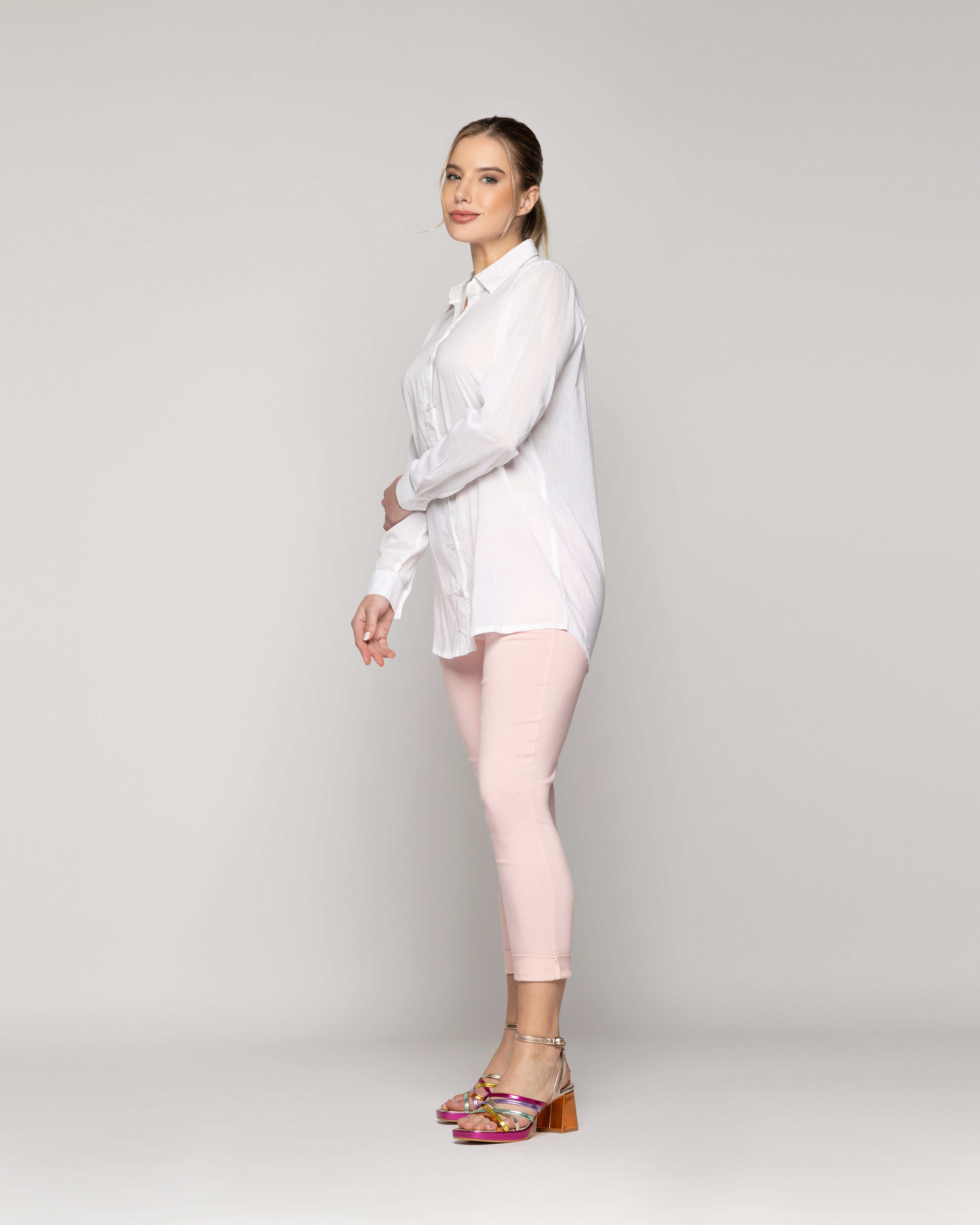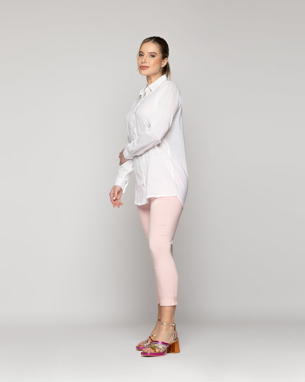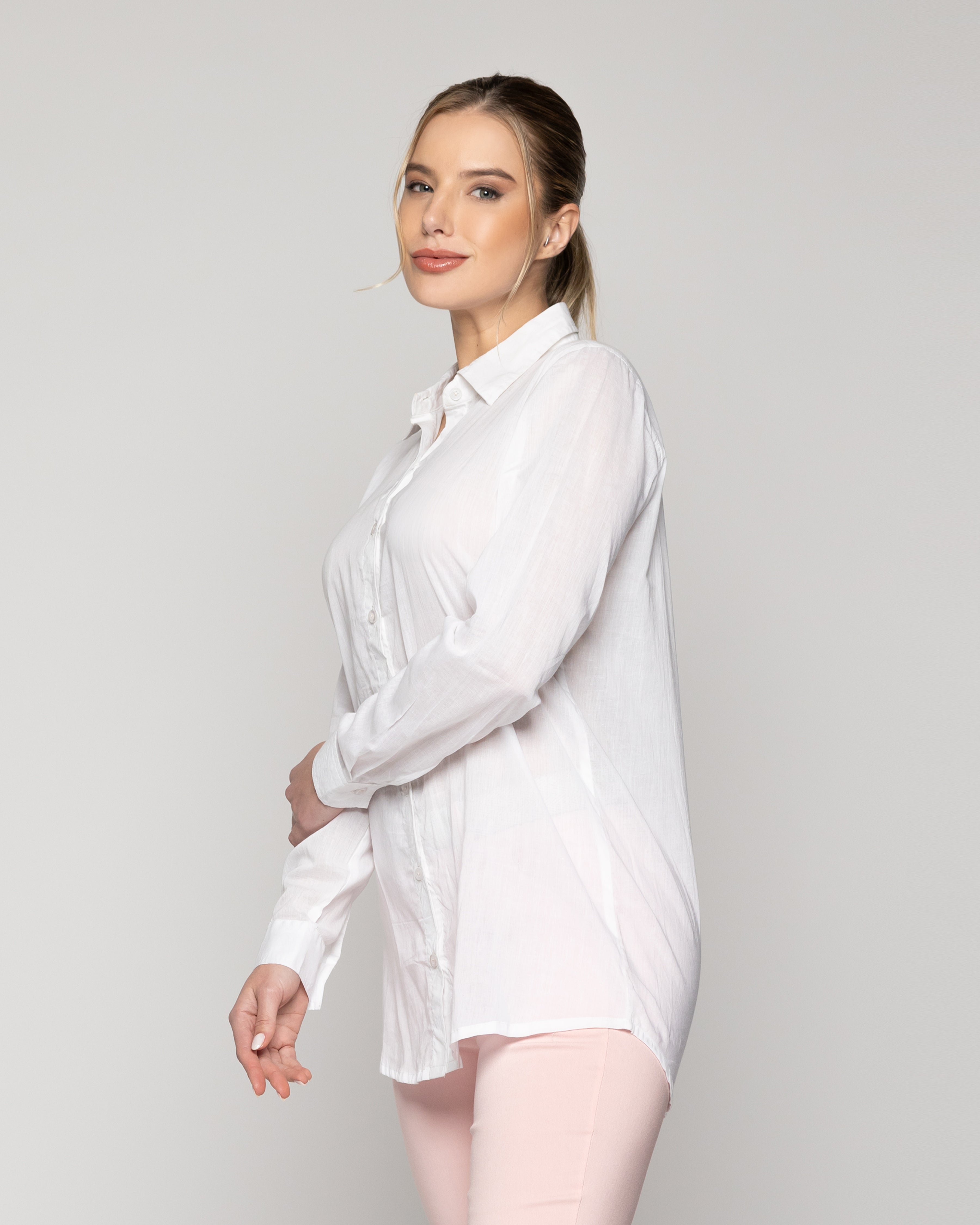 Blusa Belisa Lineatre es una prenda básica, ligera y funcional para cualquier clóset. Confeccionada en una tela fresca y respirable. Cuello camisero, manga larga y puño con botón, tiene una silueta recta y fluida que combina elegancia y comodidad. Debido a su largo con ruedo levemente redondeado permite usarla por fuera o por dentro del pantalón lo que la convierte en una prenda muy versátil. Ideal para looks formales o de oficina, combinable con pantalones de tela. En ocasiones casuales úsala con pantalones de lino o bermudas, para un look casual y playero. Disponible en variados colores vibrantes para esta temporada primavera verano.