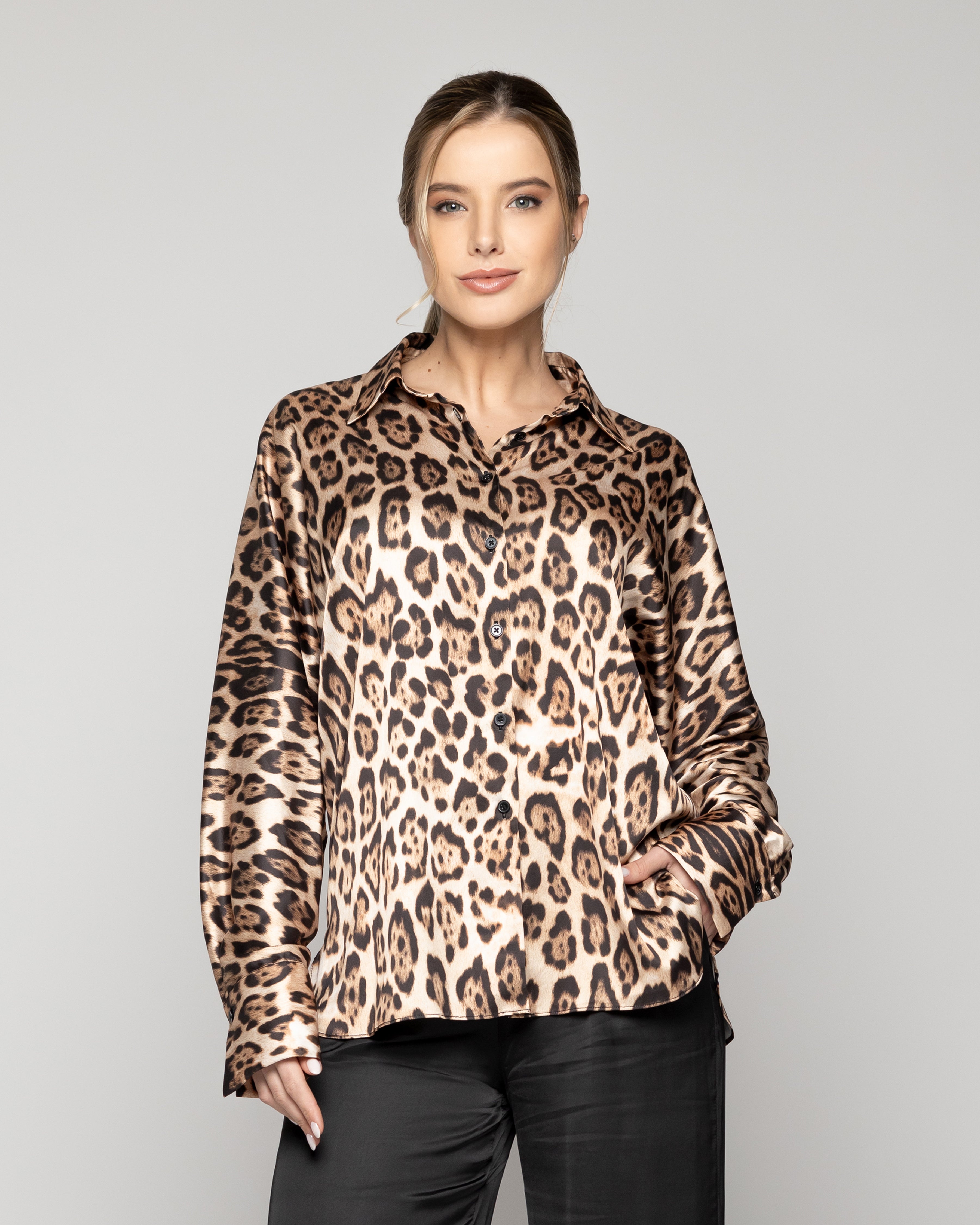 Blusa Mujer Bonaria Satinada Con Estampado Leopardo Lineatre