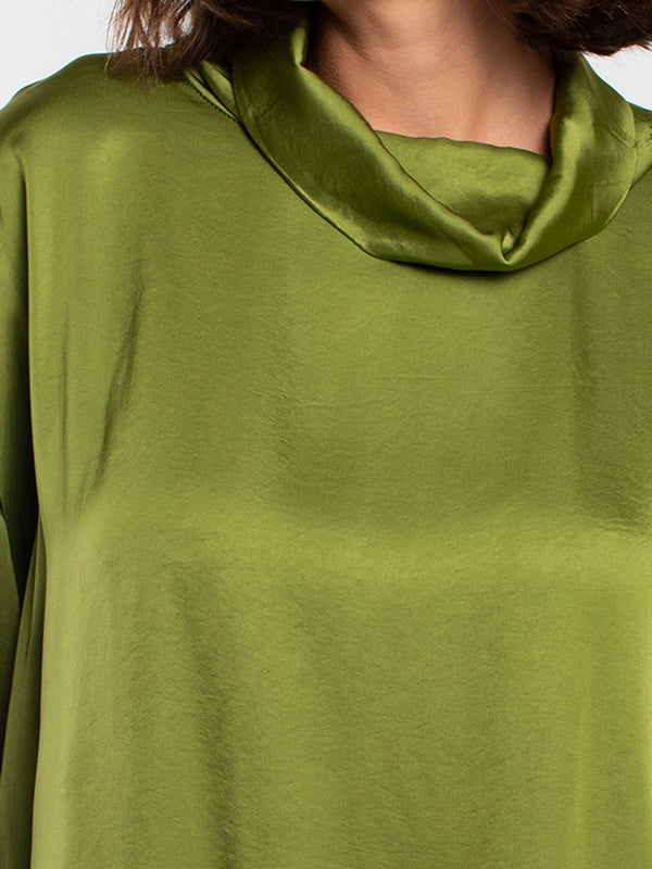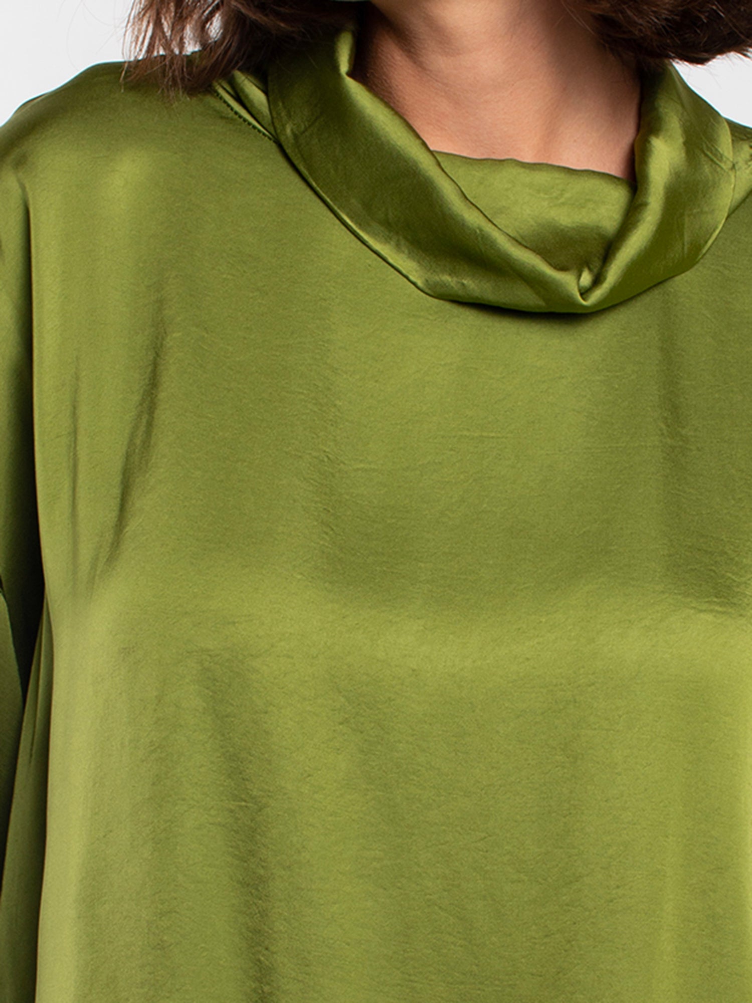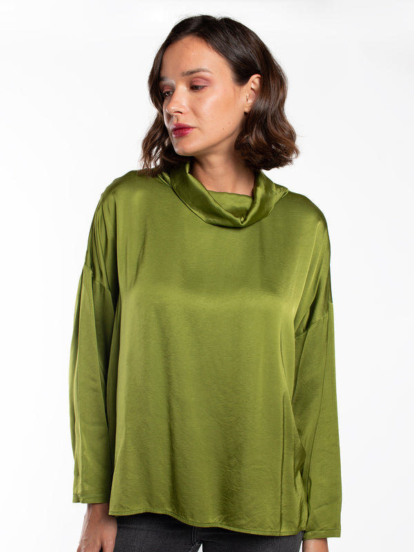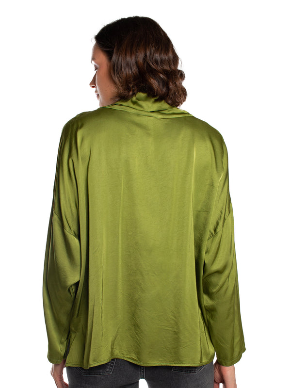 blusa satinada cuello alto y manga larga. ideal para un look casual o para fiesta.
