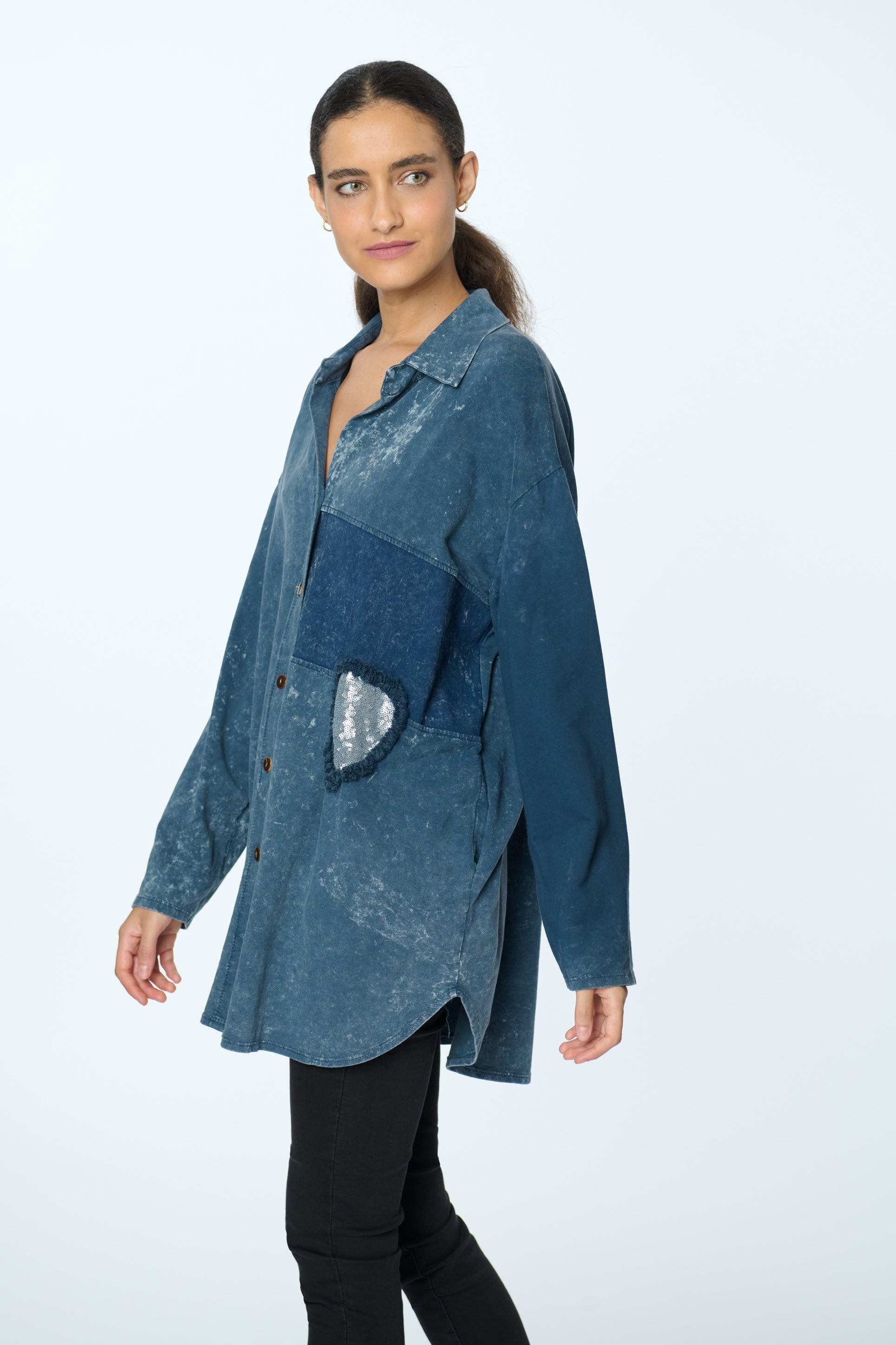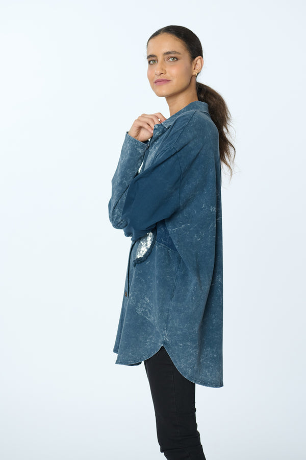 Blusa larga con detalle de lentejuelas, combina comodidad y un toque brillante.
