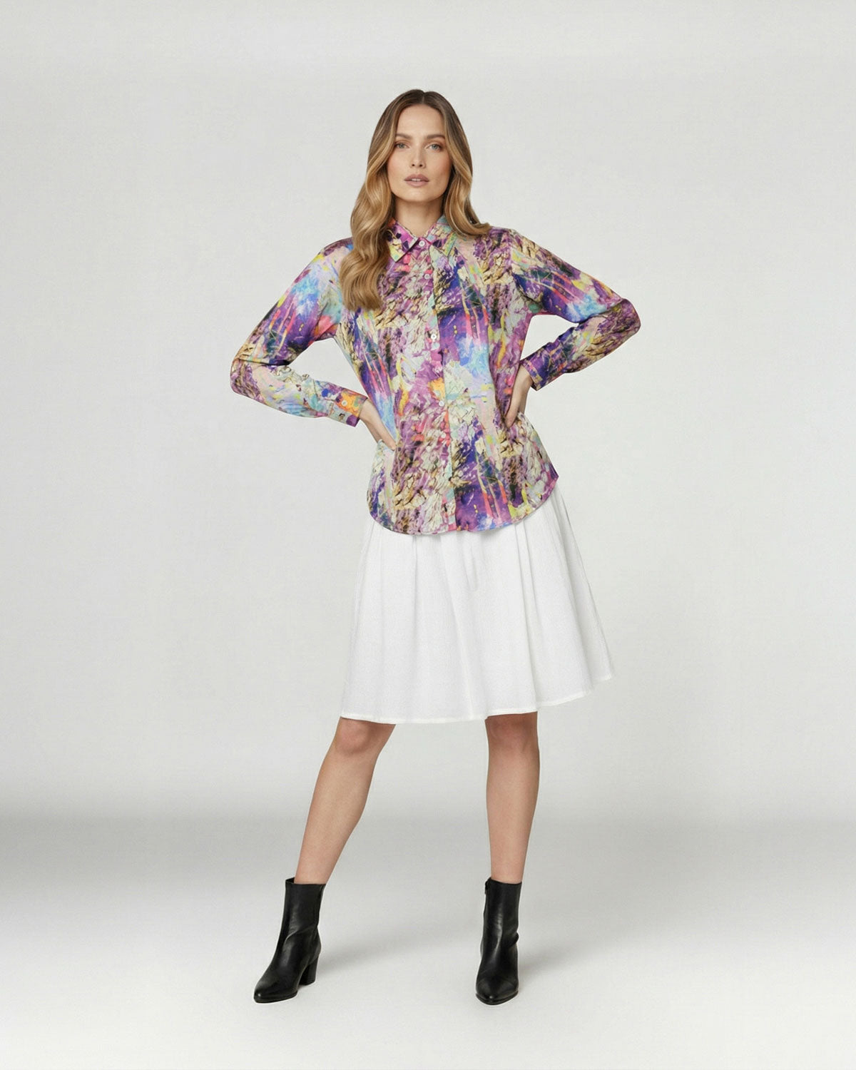 Blusón Mujer Agnese Regular Cuello tipo camisa Manga larga Lila Lineatre