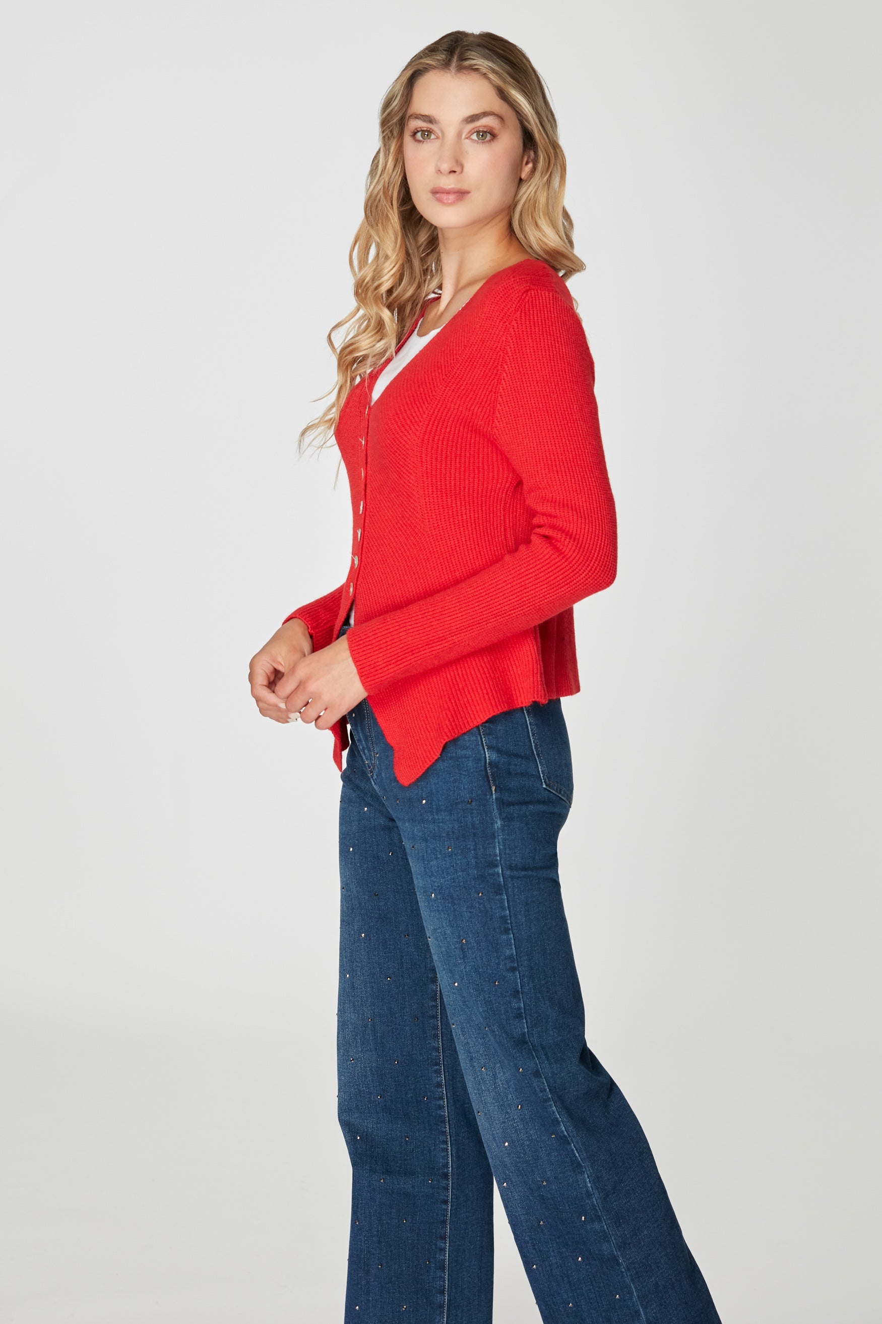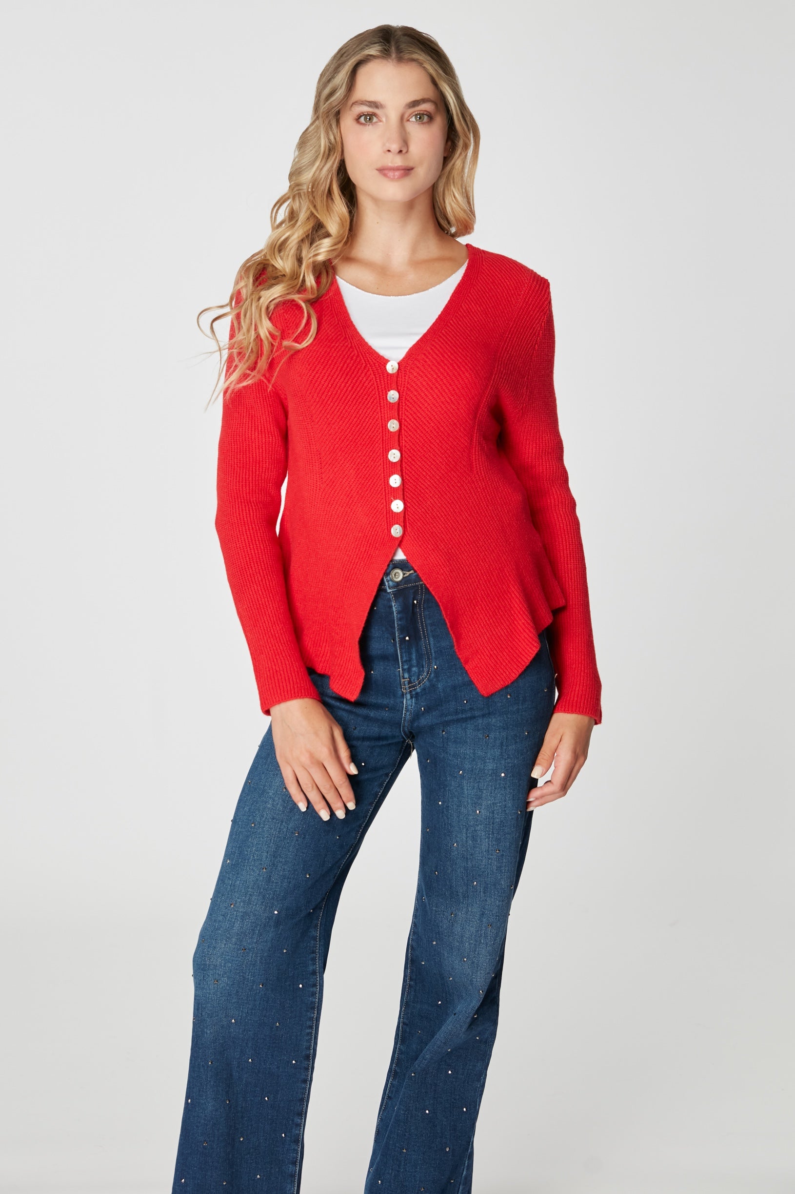 Cardigan cuello en v y corte en v con botones, manga larga, una elección versátil y moderna para el invierno.