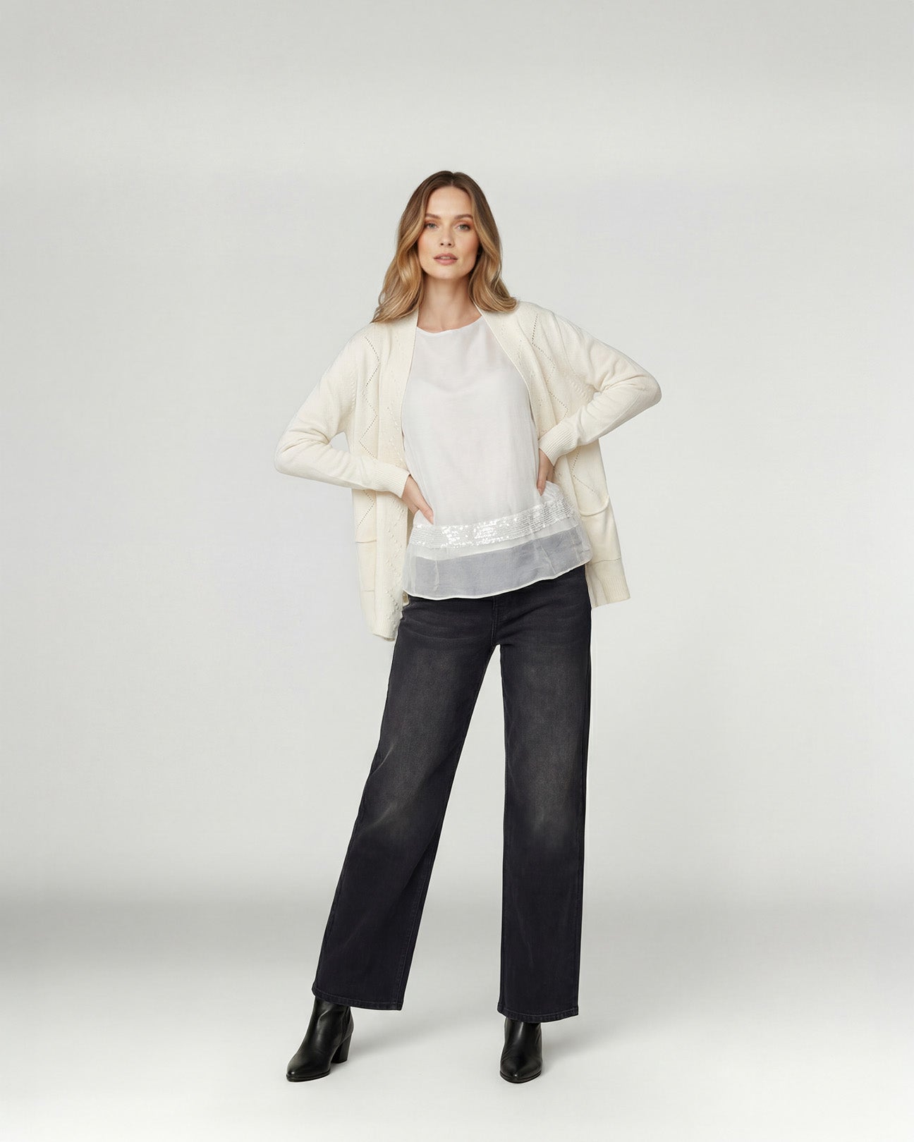 Cardigan Mujer Paola Relaxed Cuello Tipo Kimono Manga Caída Crudo Lineatre