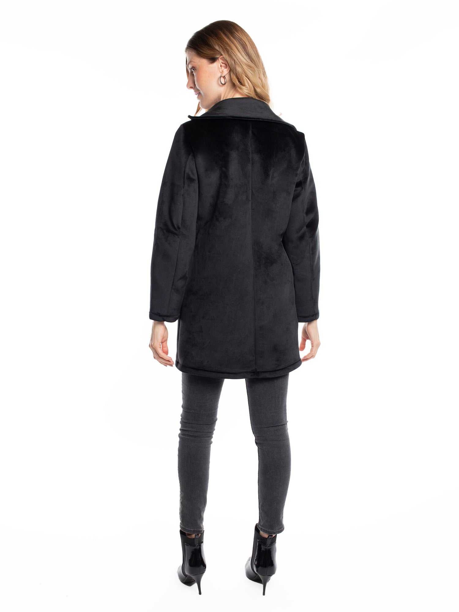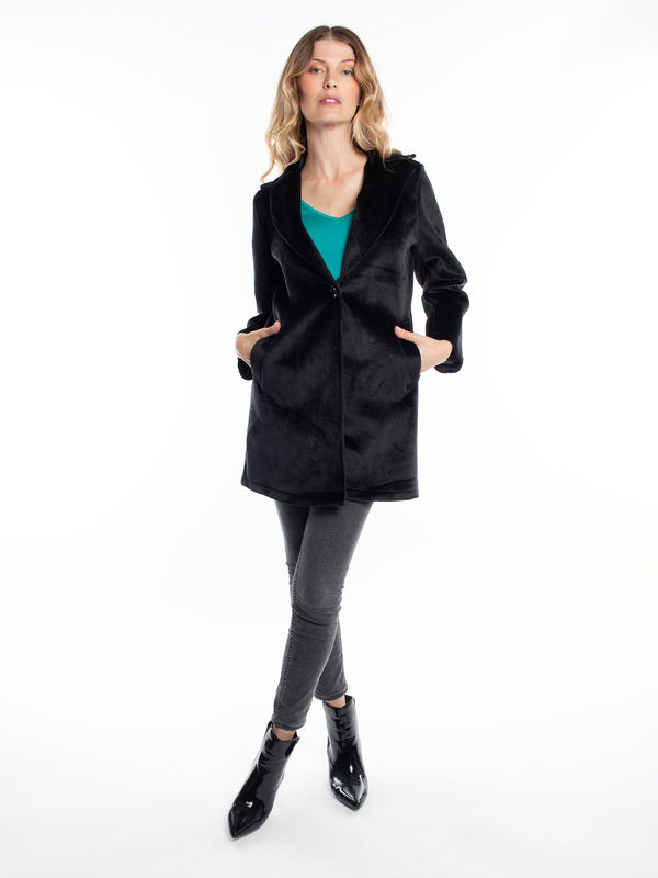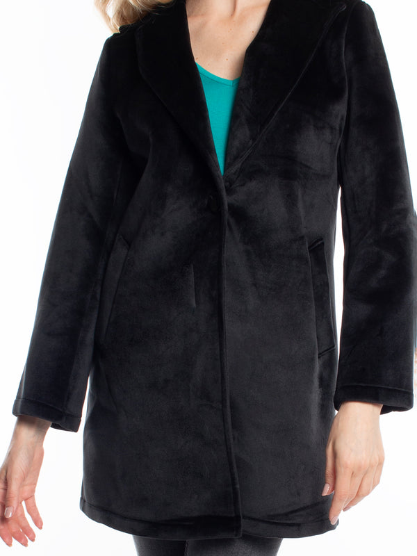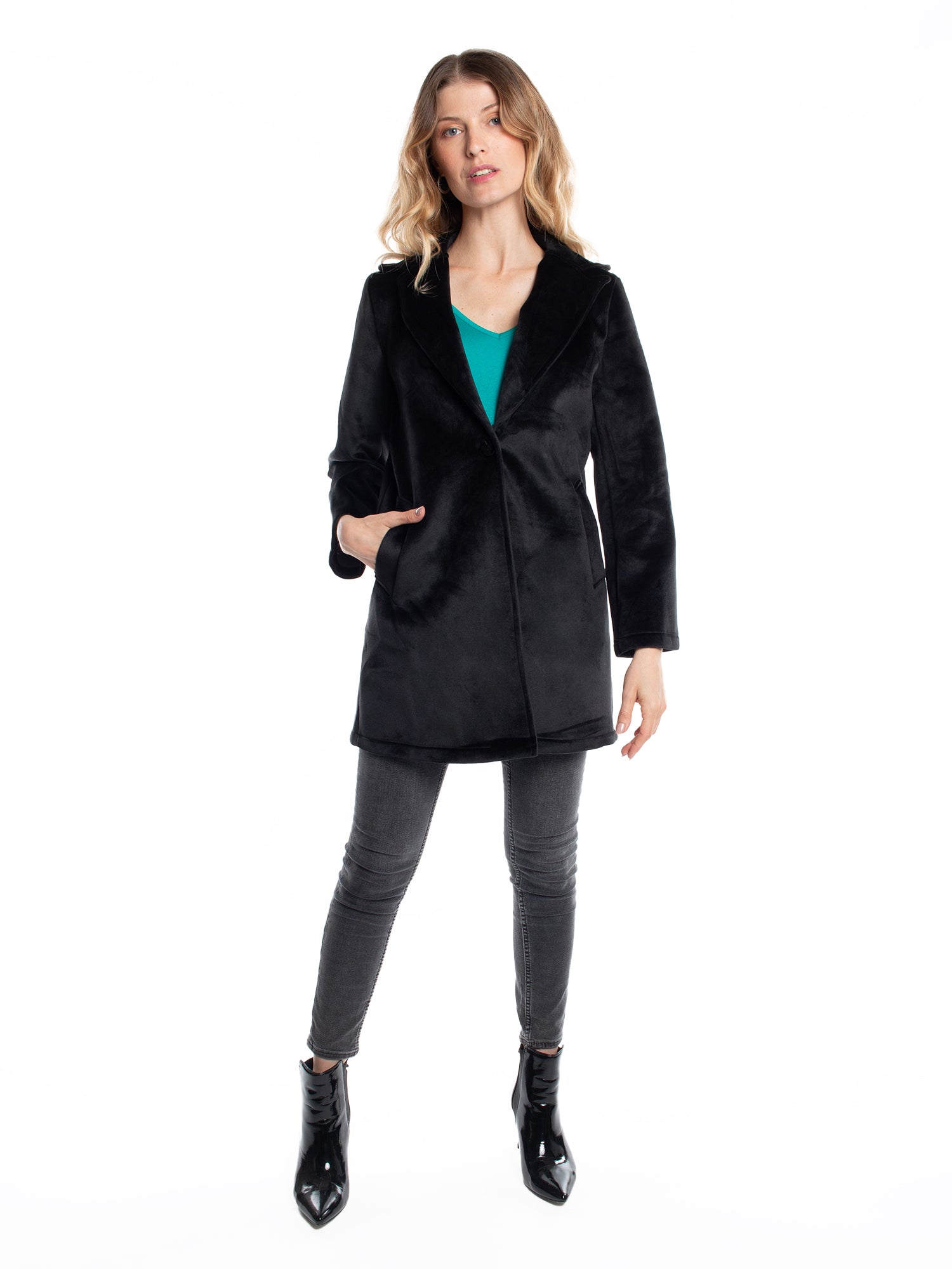 chaqueton grueso tipo terciopelo. bolsillos laterales y botón delantero.