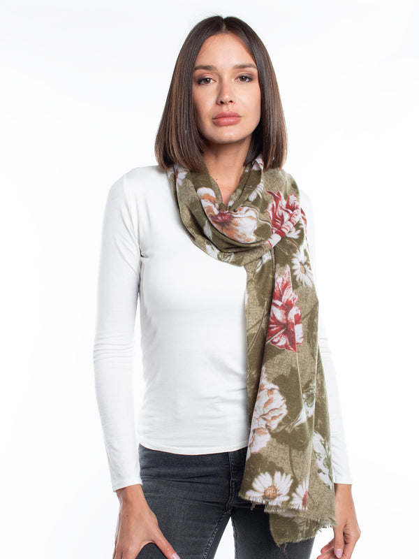 echarpe estampado floral ideal para look casual