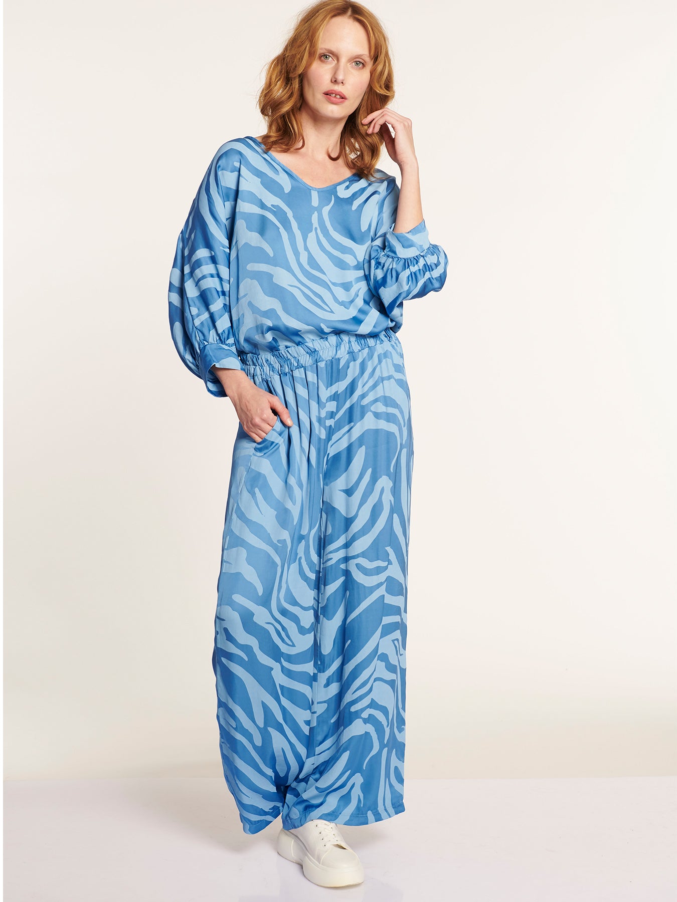Pantalón holgado con bolsillos, pretina elasticada para mayor firmeza, corte recto ancho.
