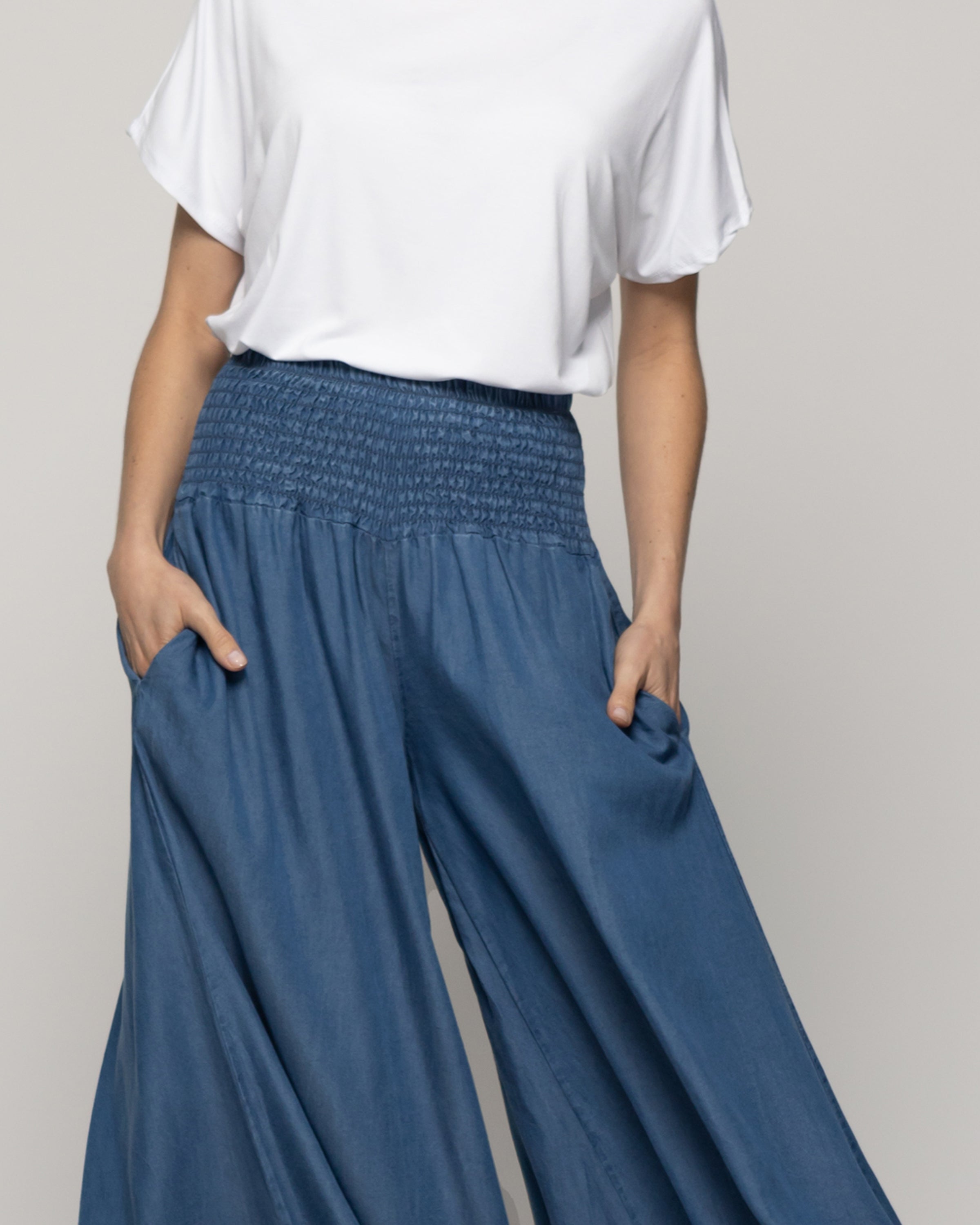 Pantalón Mujer Pilar Palazzo Azul Con Pretina Fruncida Lineatre