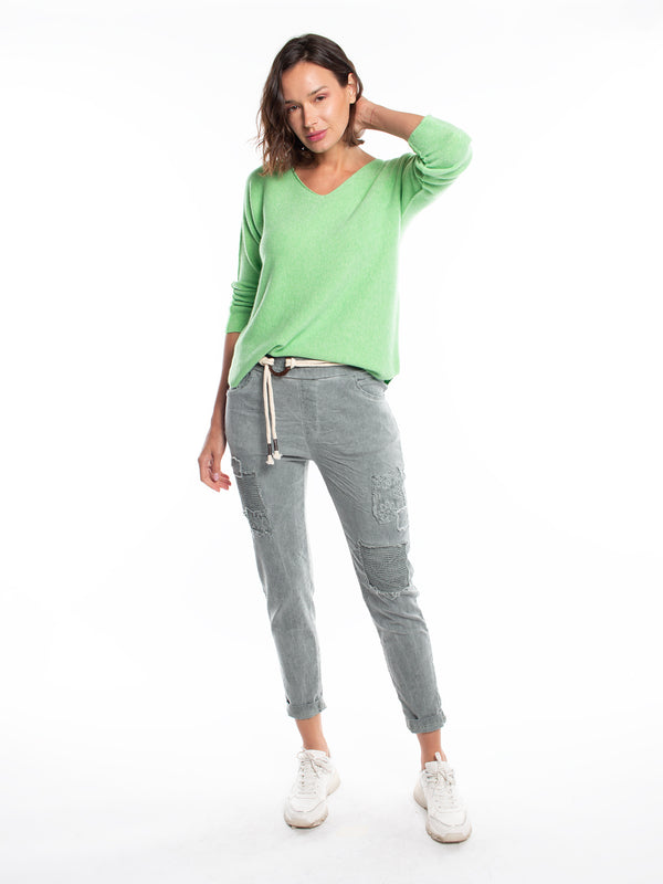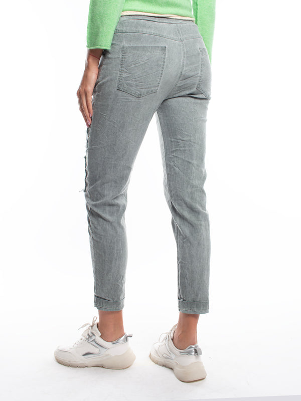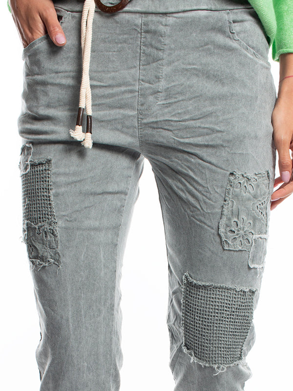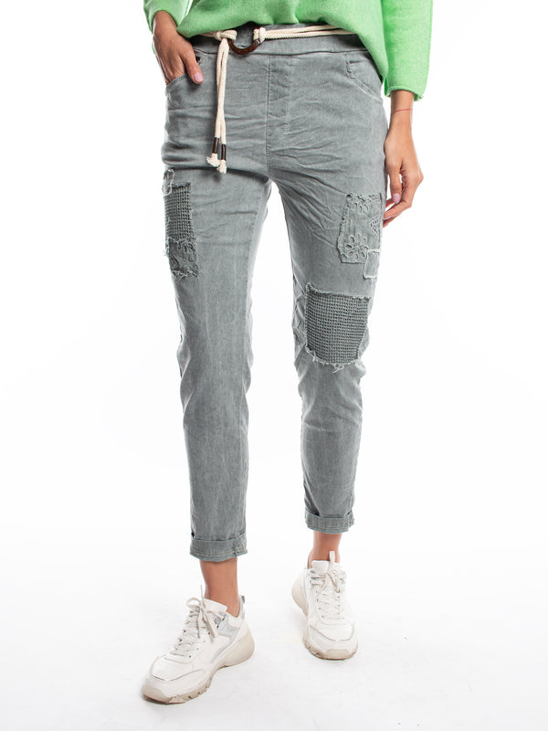 pantalon tipo jogger con detalle de parches. cintura elásticada y cinturon incluído. 4 bolsillos.