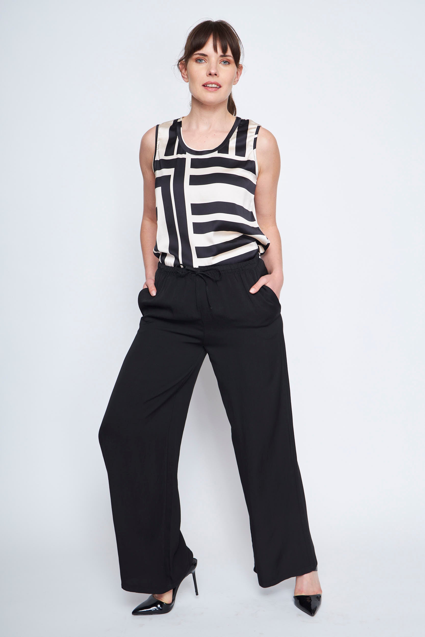 - Descripción: Pantalón ancho con un diseño moderno y cómodo, ideal para cualquier ocasión. La pretina elasticada ajustable asegura un ajuste perfecto, mientras que los bolsillos delanteros añaden funcionalidad y estilo.