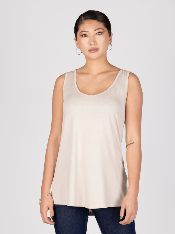 Polera básica sin mangas, cuello en U. Ideal como must de armario