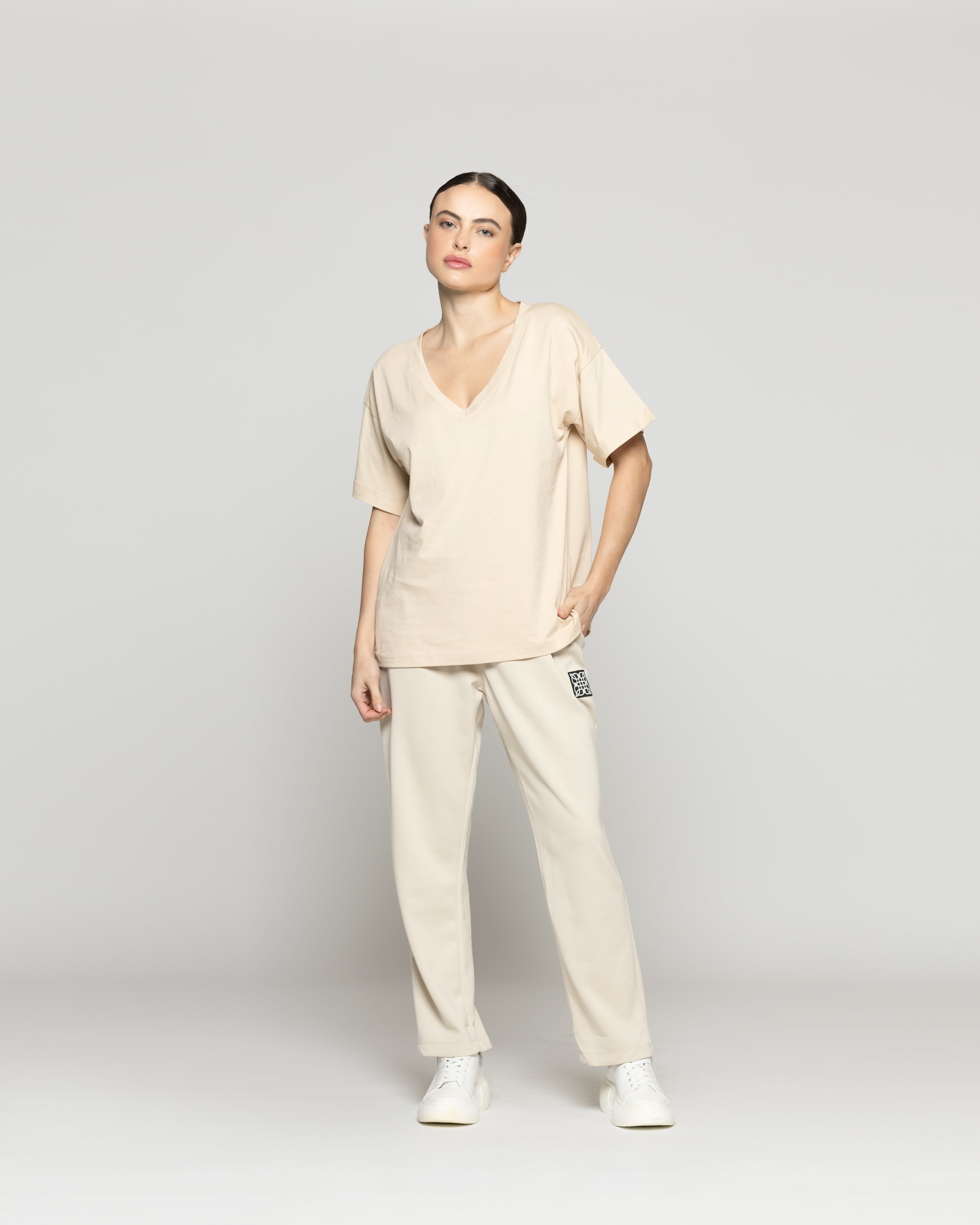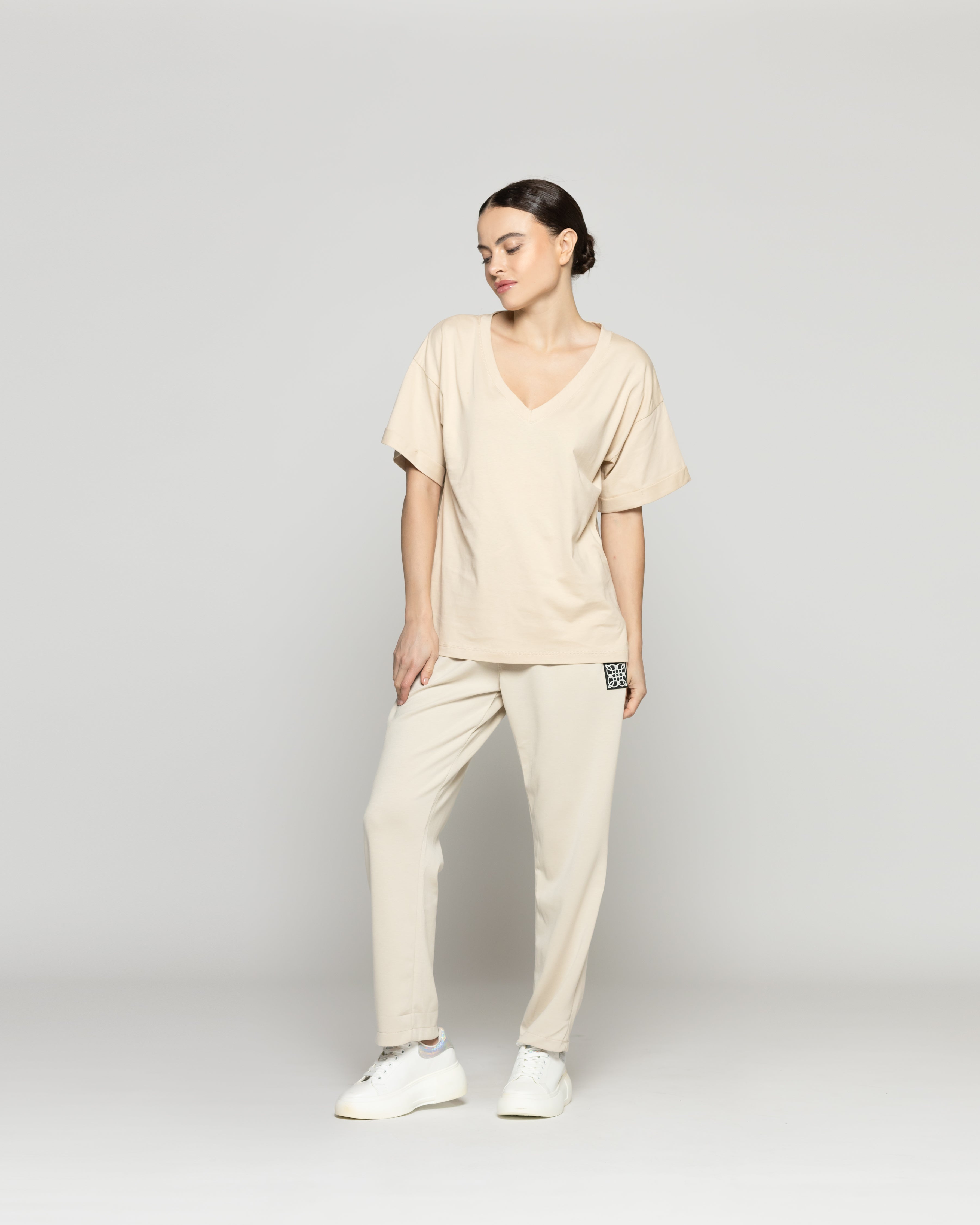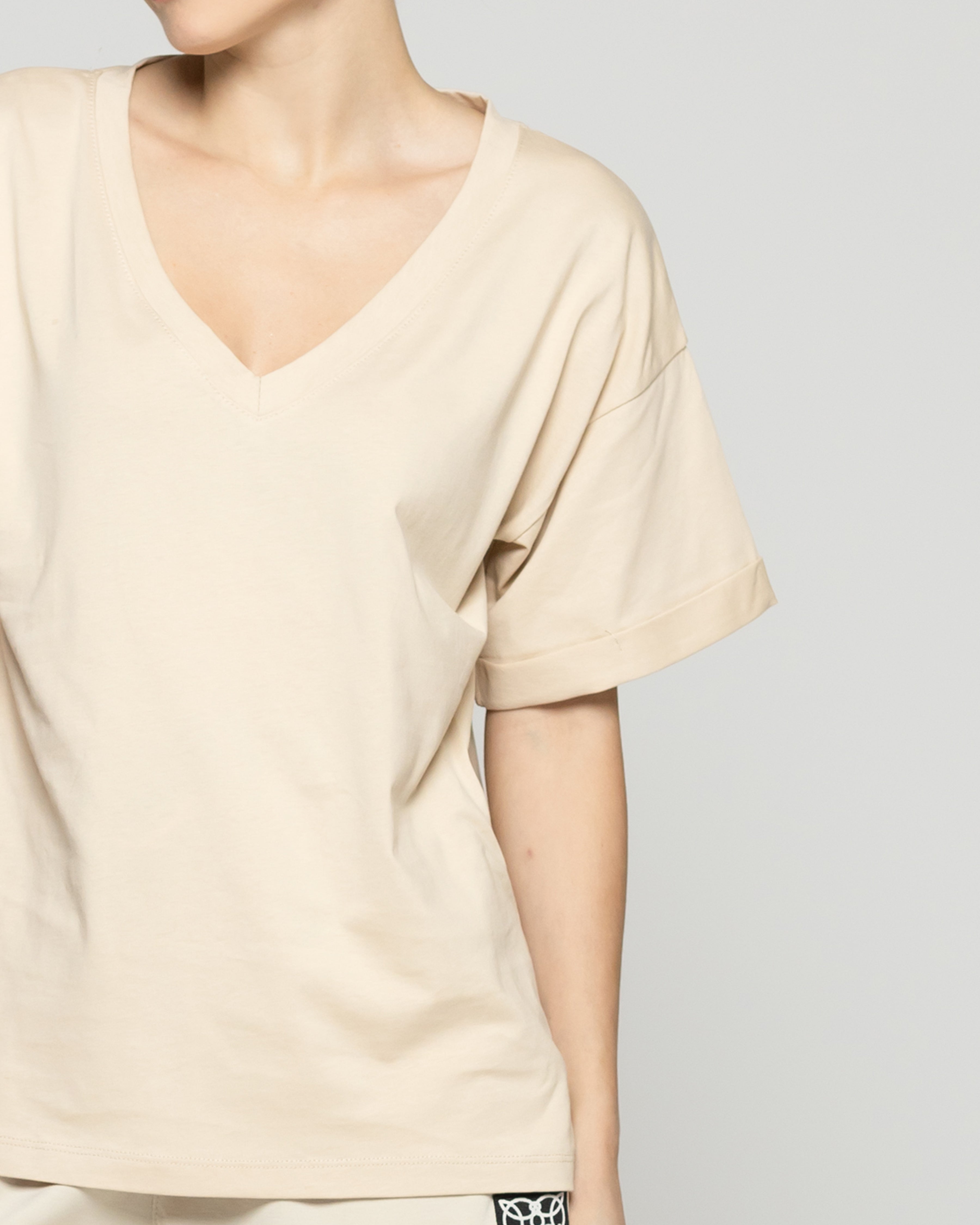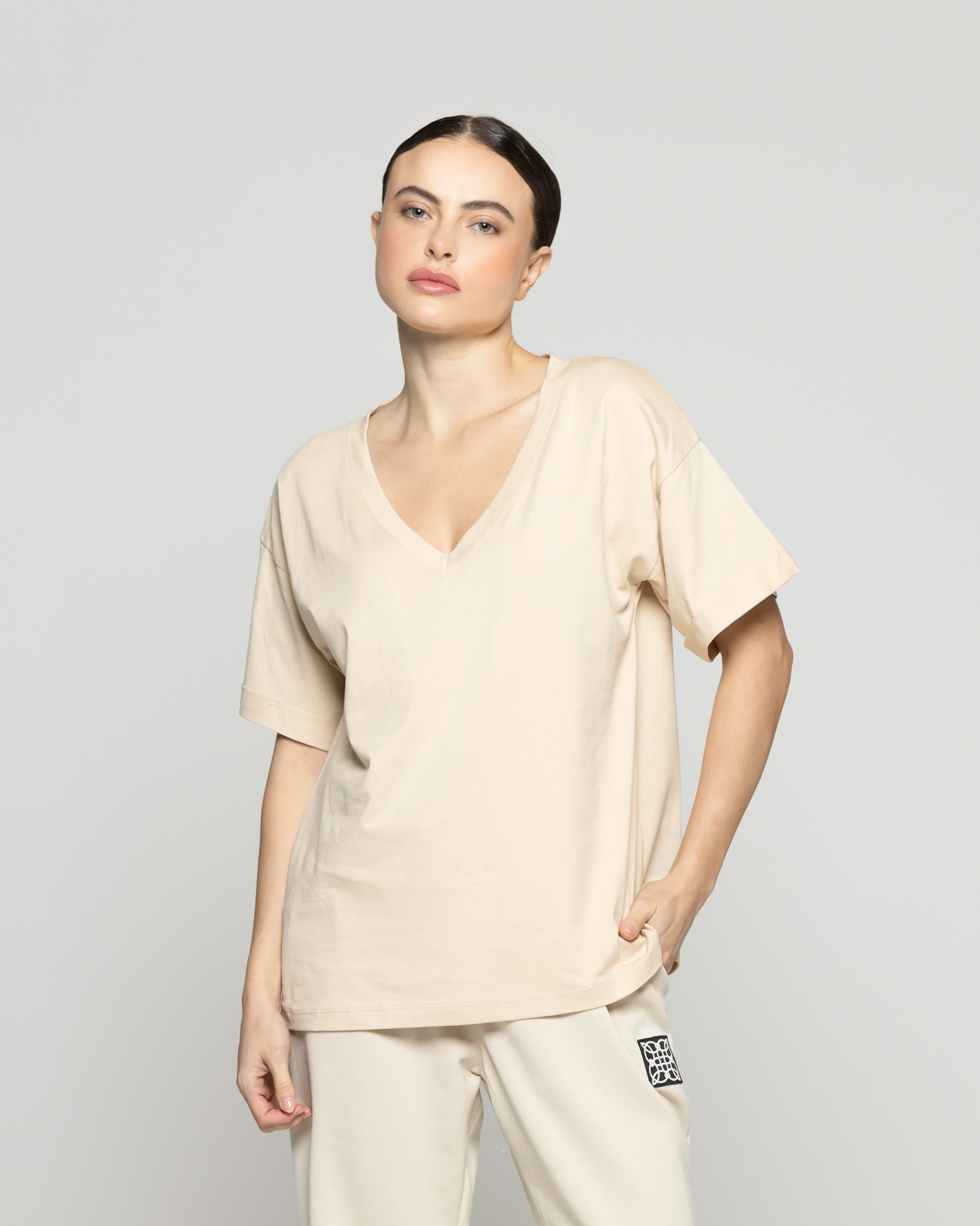 Polera Mujer Básico Ornella Escote V Beige Lineatre
