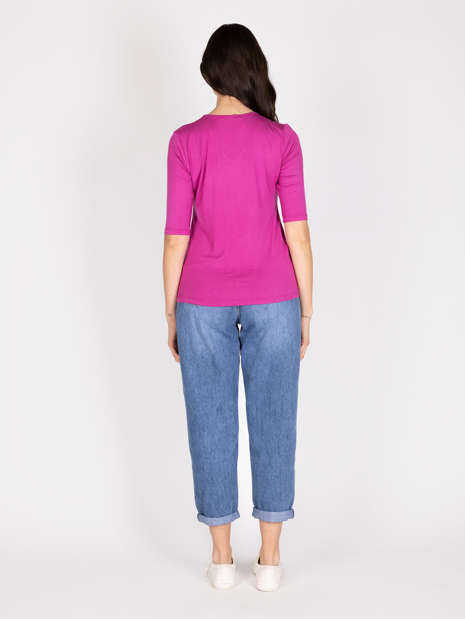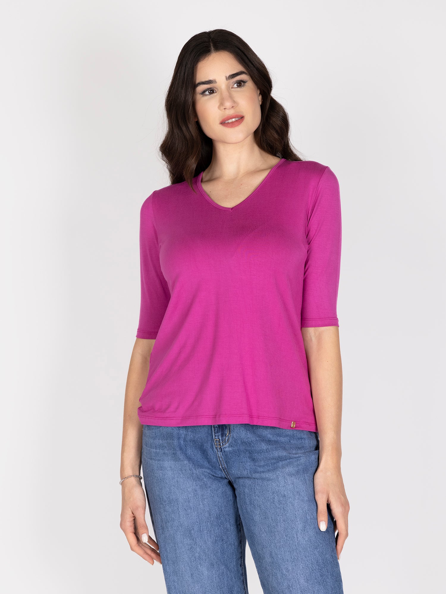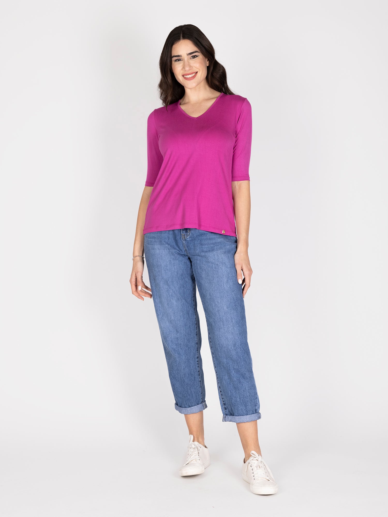 Polera básica manga 3/4, cuello en V. Ideal como must de armario