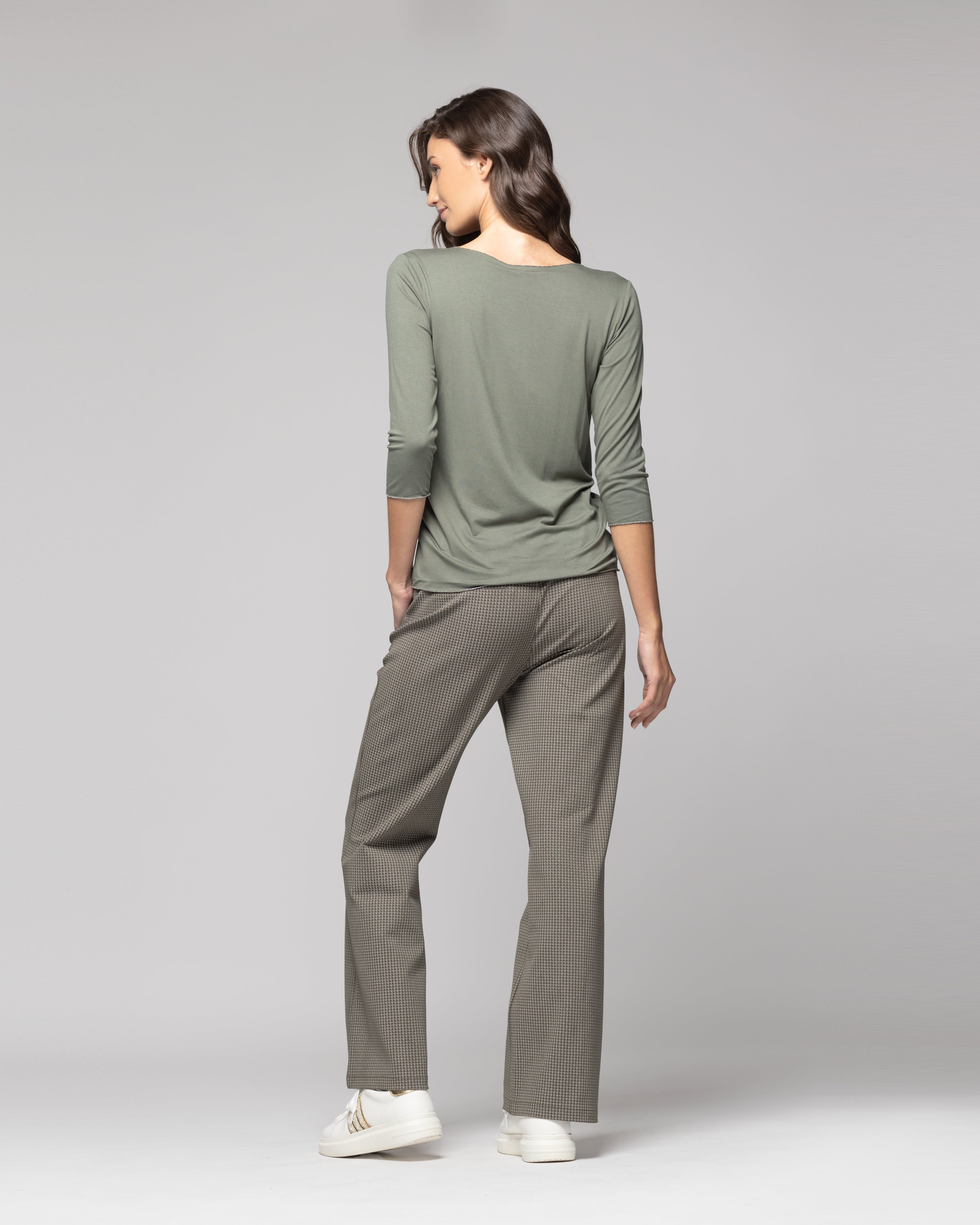 Polera básica color verde manga 3/4 con calce regular. Detalle de hilo brillante en orillas de puño, cuello y base. Con carácter propio para destacar sin esfuerzo.