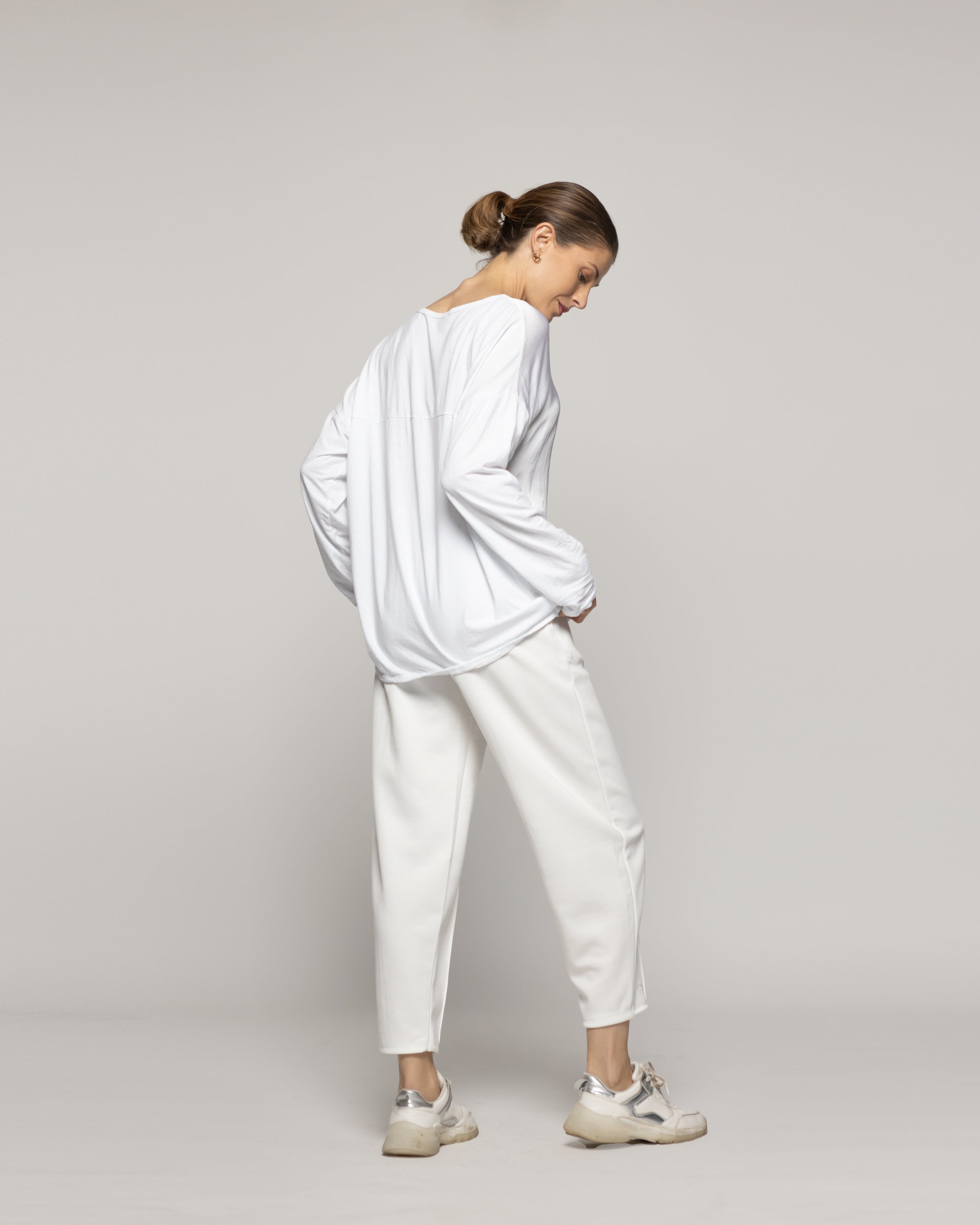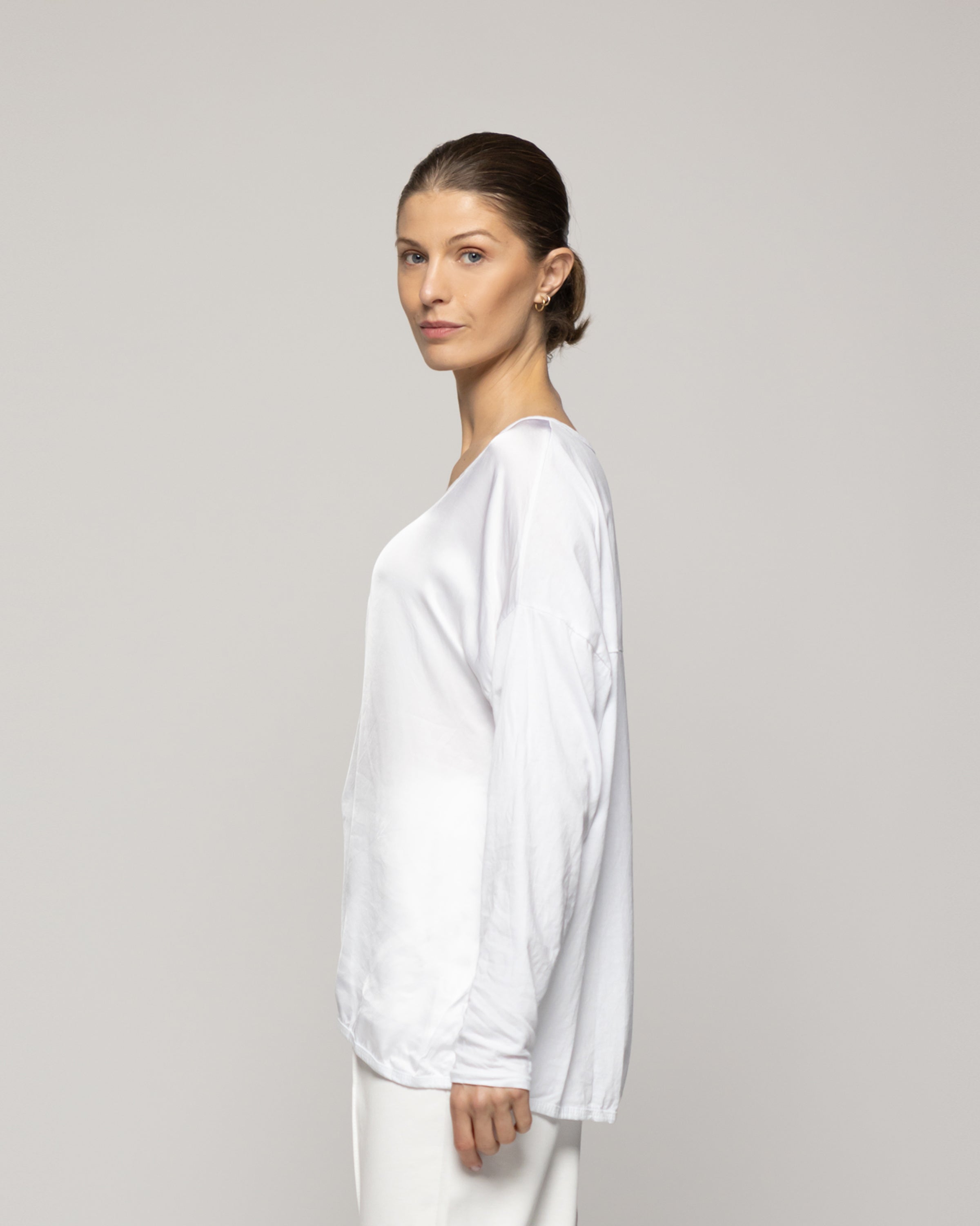 La elegancia del blanco se renueva la blusa Oba Lineatre de caída fluida y brillo sutil. Su silueta relajada y cuello en "V" le otorgan una sofisticación natural y sus mangas largas la hacen ideal para media temporada. Ideal para looks monocromáticos o para combinar con piezas de color, esta blusa es tan versátil que puedes llevarla en el día con jeans o pantalones amplios, y también en la noche con una falda o blazer. El satén aporta suavidad al tacto y un movimiento delicado, convirtiéndola en un imprescindible para quienes buscan vestir con simpleza, estilo y personalidad.