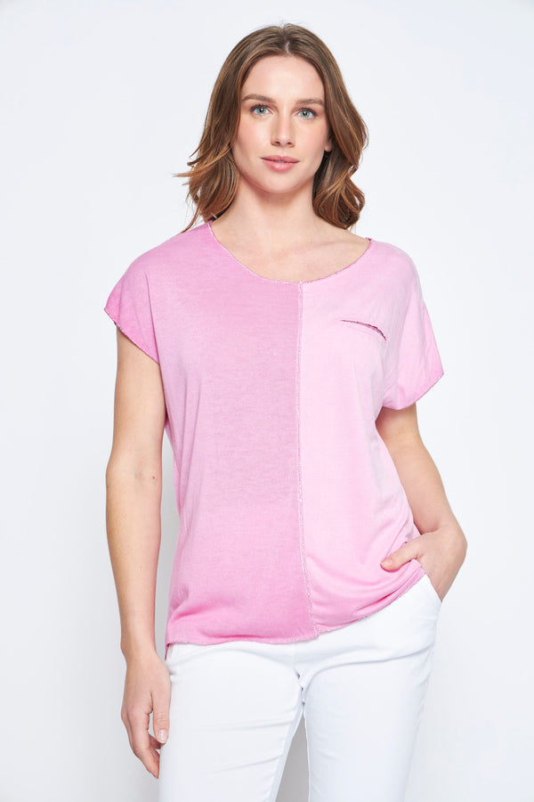 - Descripción: Polera con detalles de costuras decorativas plateadas, manga corta, escote redondo y detalle de lentejuelas. Ideal para un look casual con un toque de elegancia.