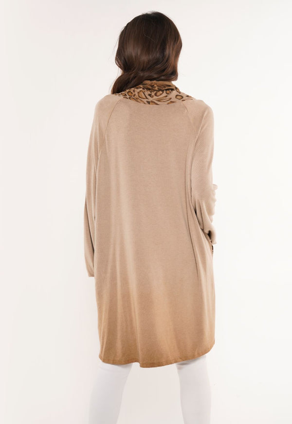 Polerón estilo hoodie con cuello tortuga holgado, corte asimétrico y estilo animal print. Para lucir looks mas casuales pero originales.