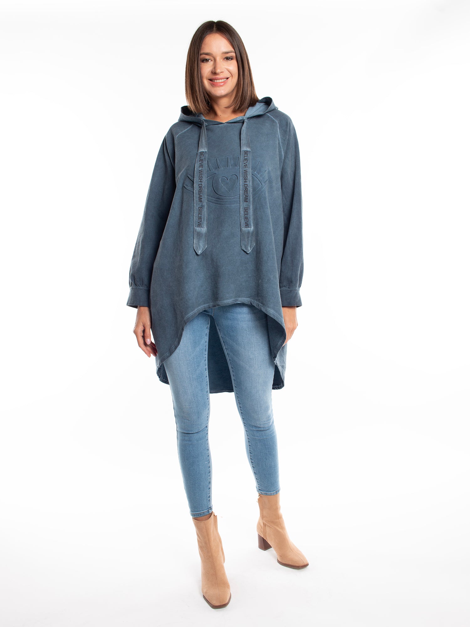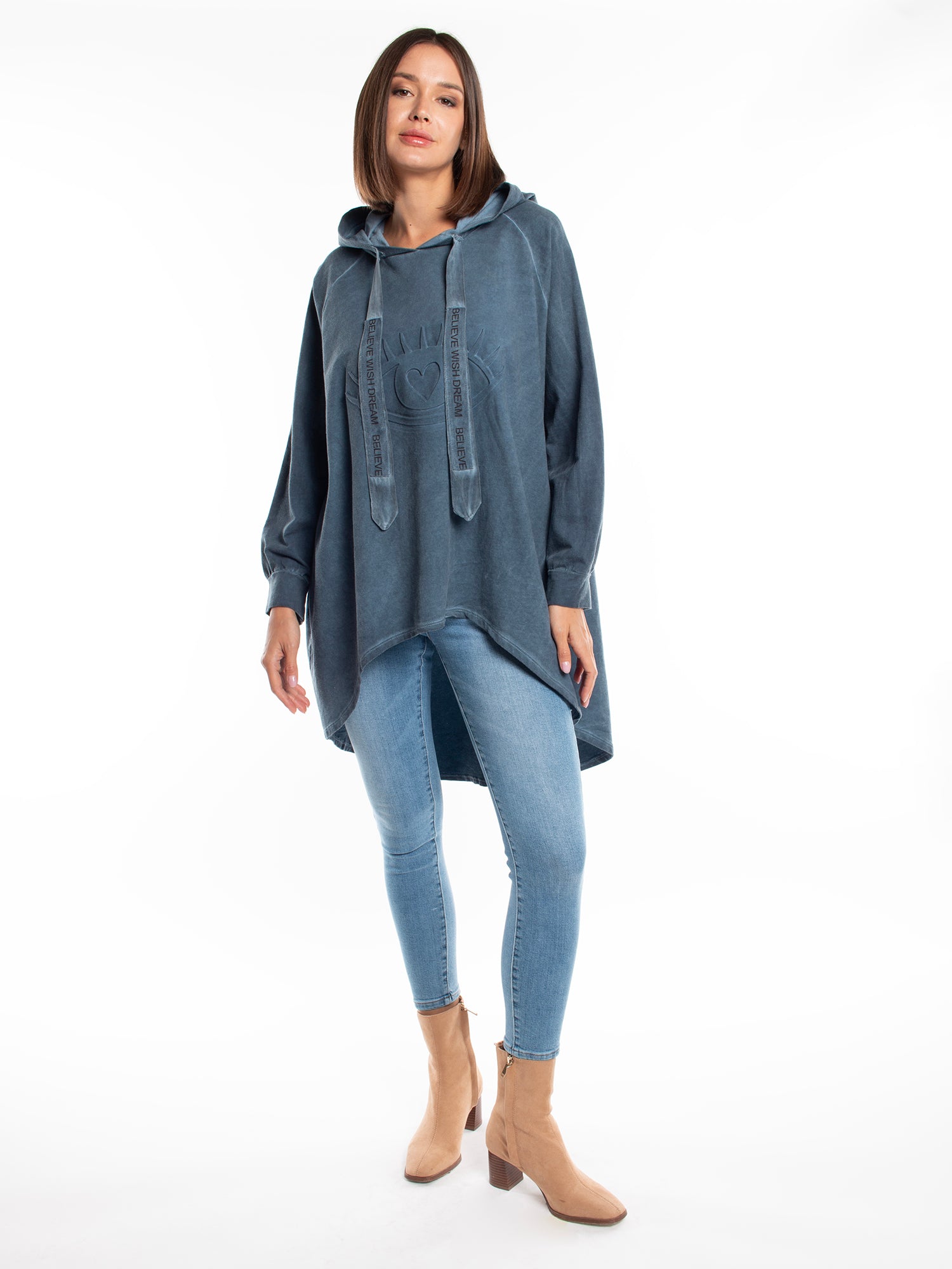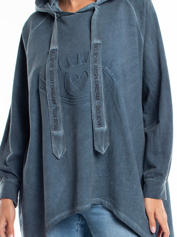 poleron holgado. capucha. corte asimetrico.estampado delantero. ideal para look informal