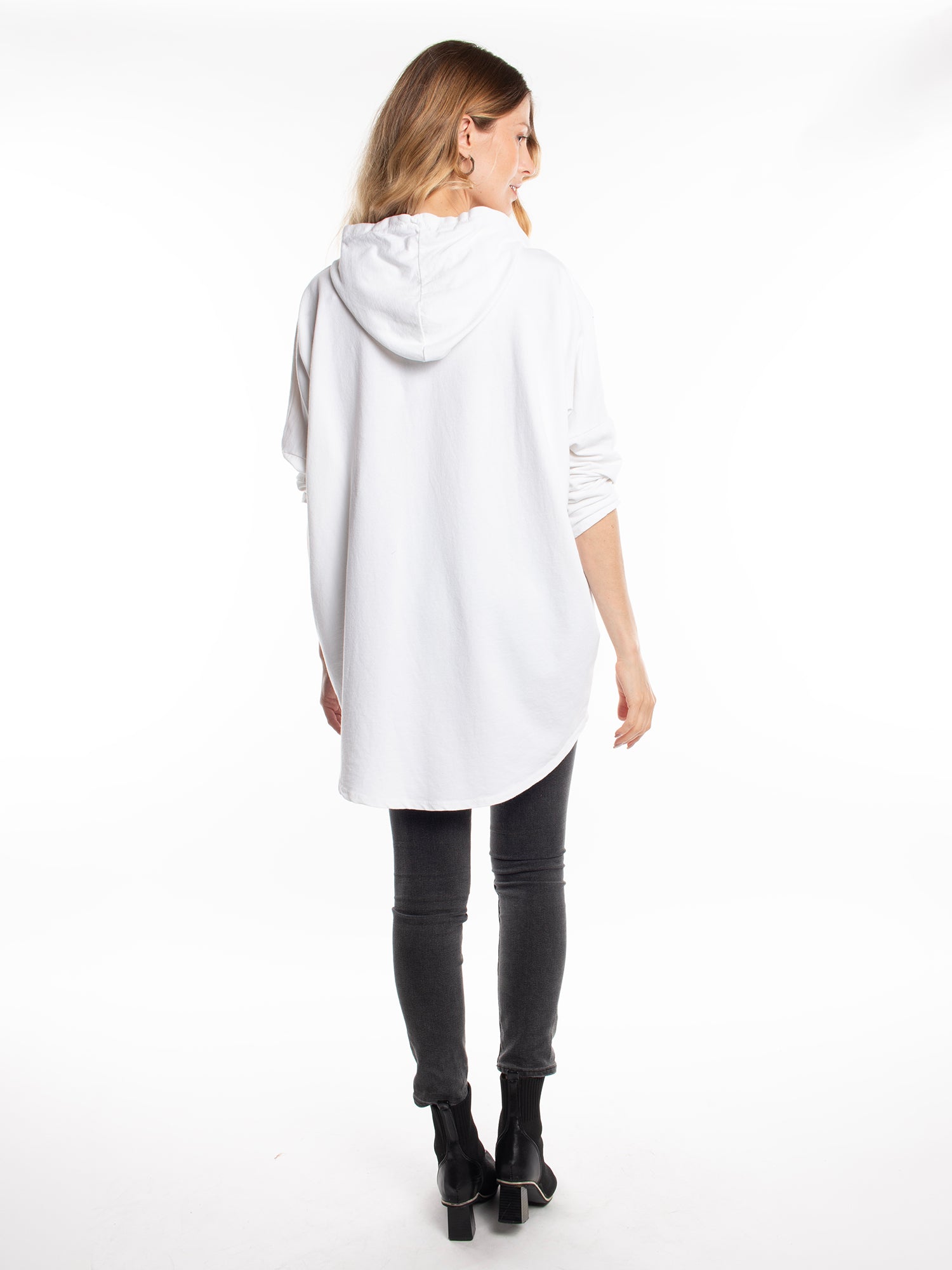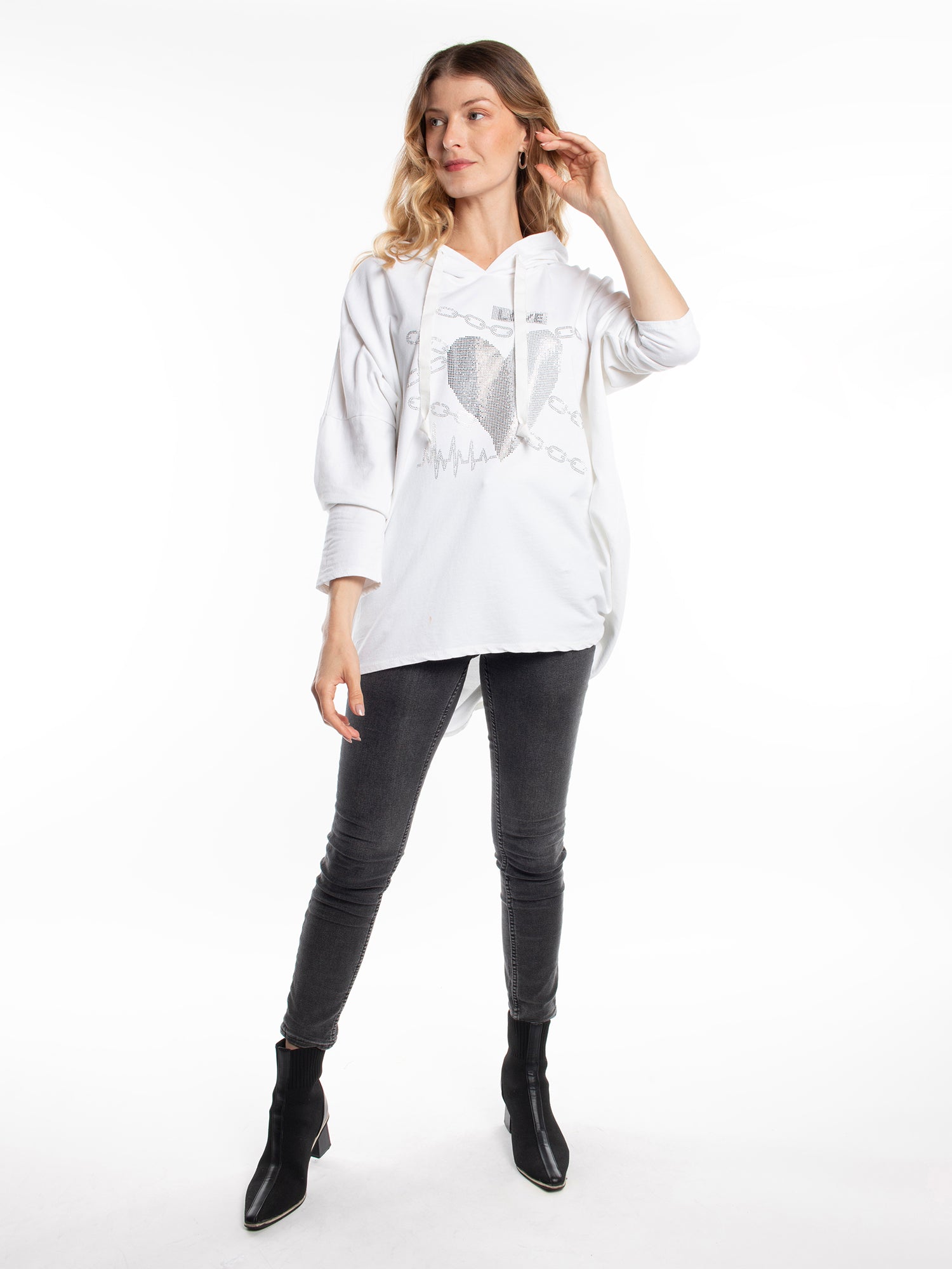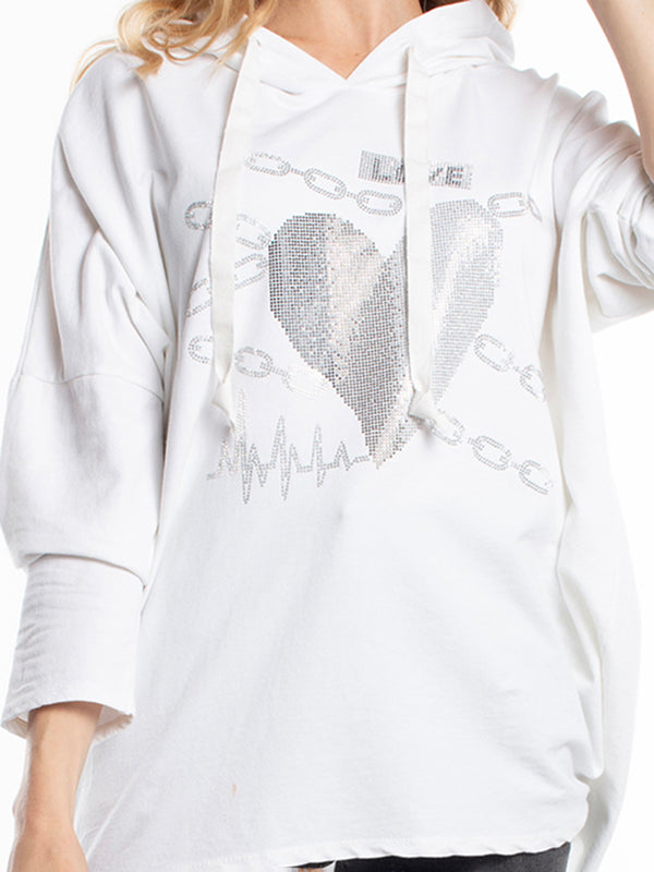 polerón holgado con capucha .liston ajustable en el cuello. estampado con aplicación de brillos.ideal para look casual.