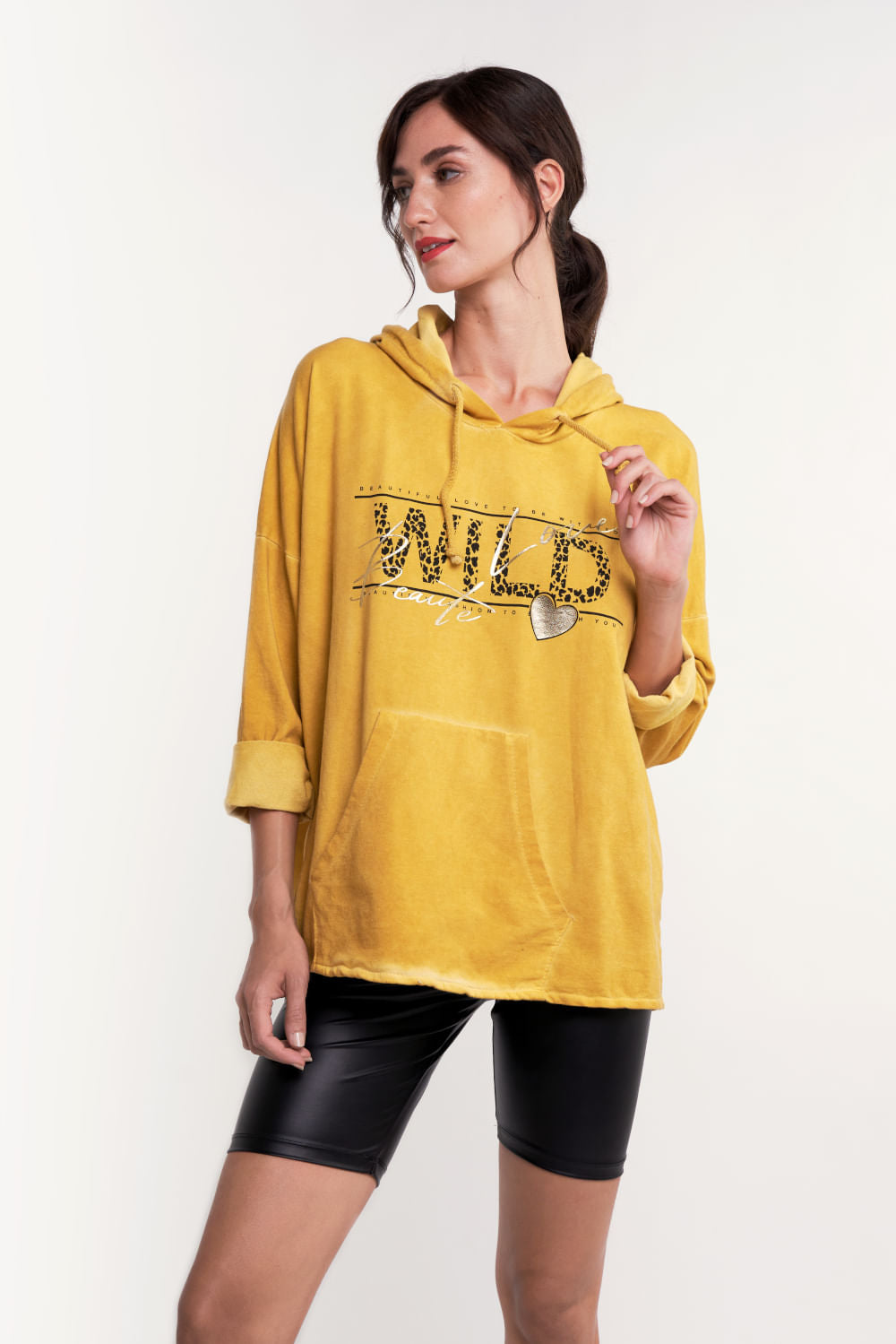 Polerón estilo hoodie con capucha y letras en estilo animal print. Para looks casuales o deportivos