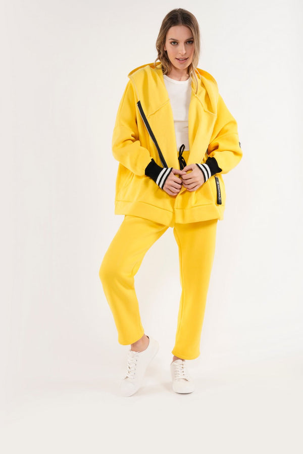 Poleron estilo hoodie, oversize con cierre medio, capucha y bolsillos asimétricos. Ideal para looks casuales
