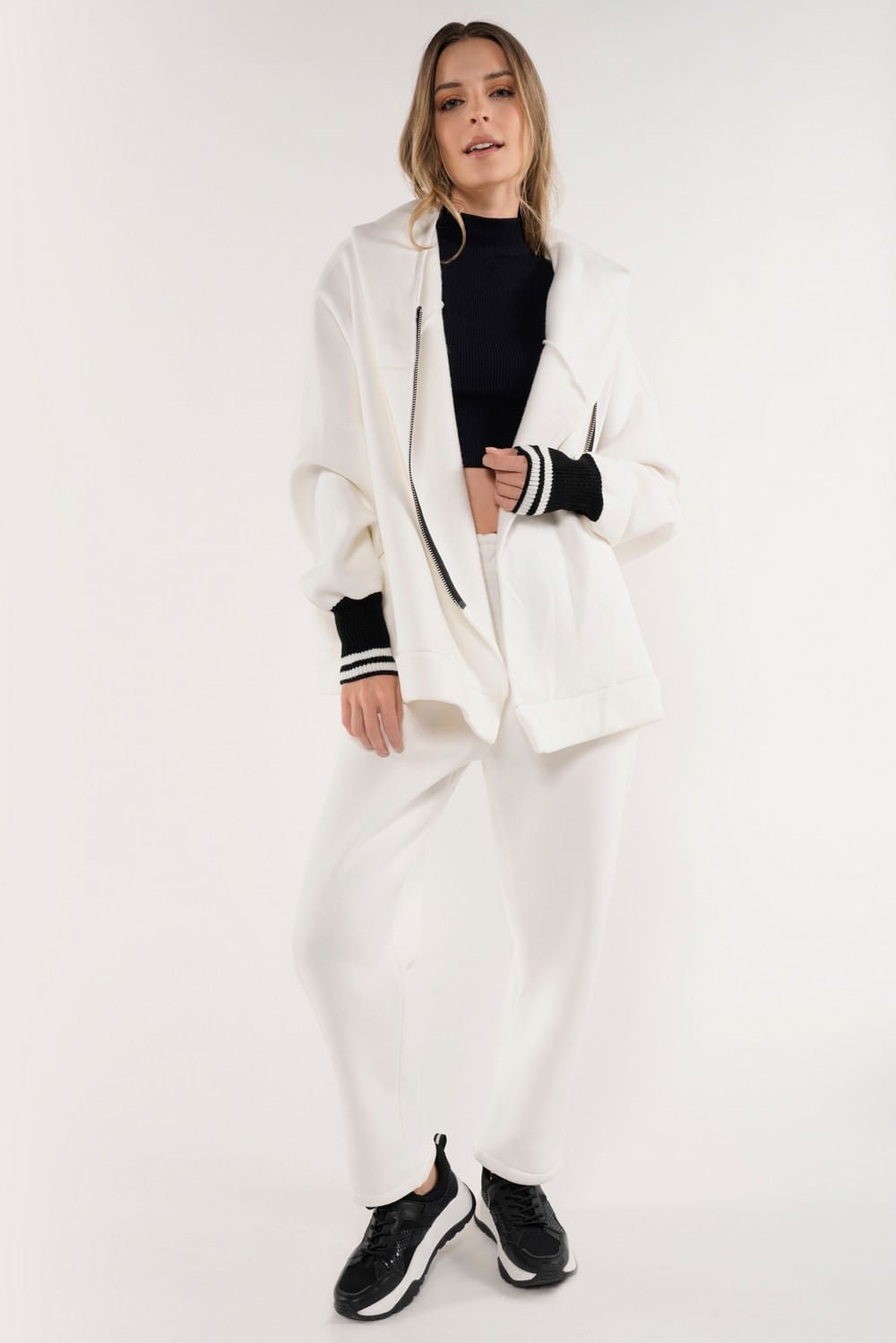 Poleron estilo hoodie, oversize con cierre medio, capucha y bolsillos asimétricos. Ideal para looks casuales