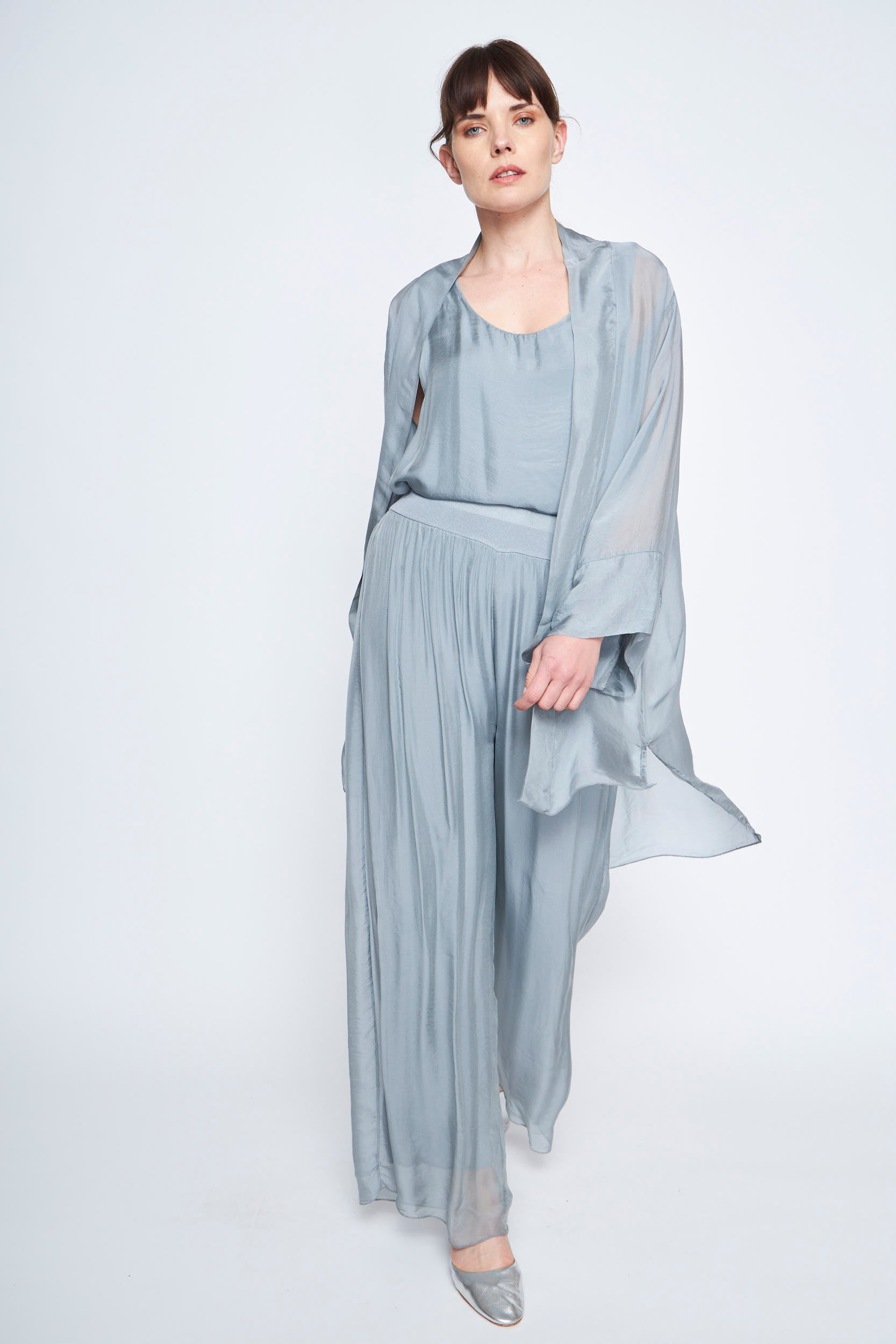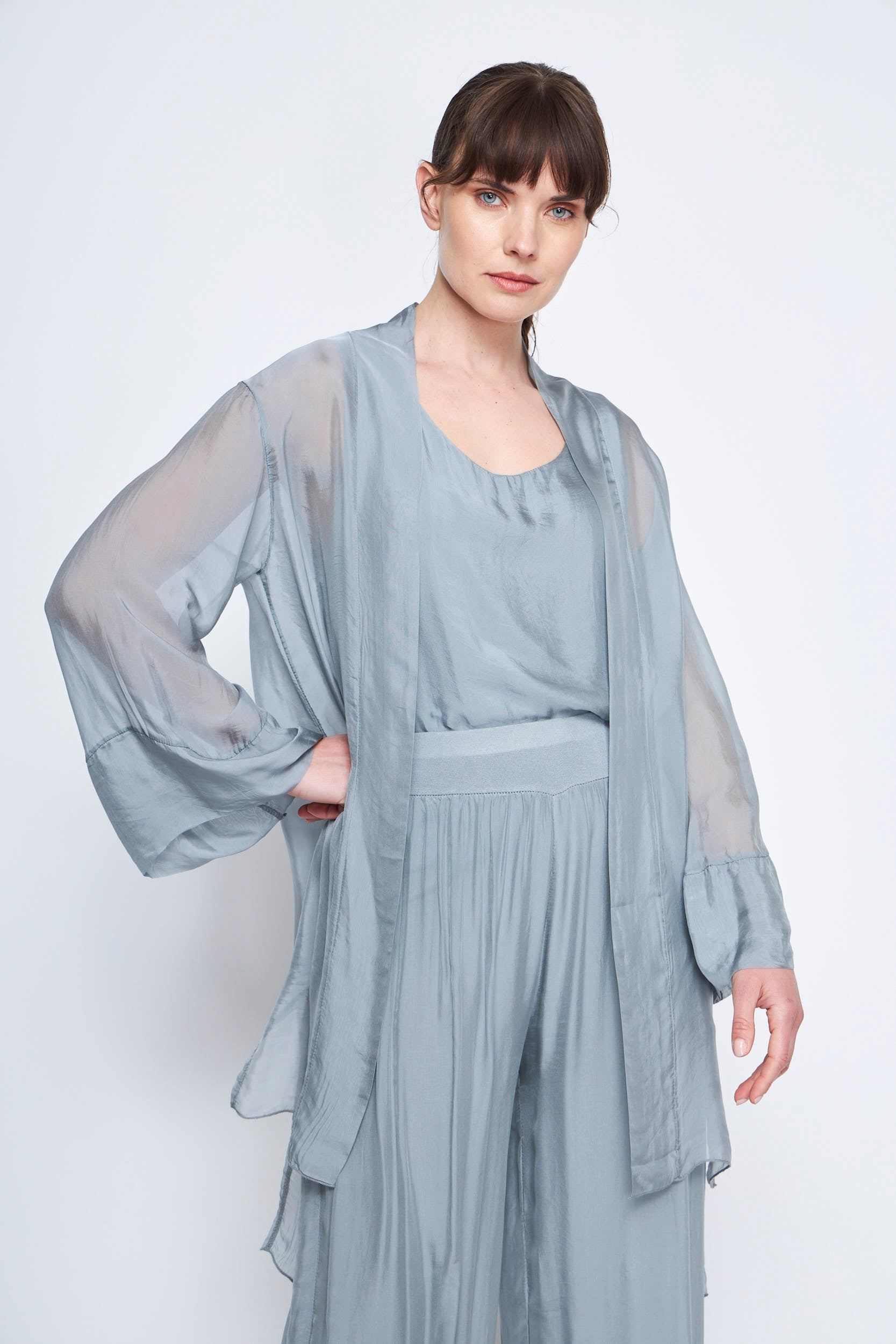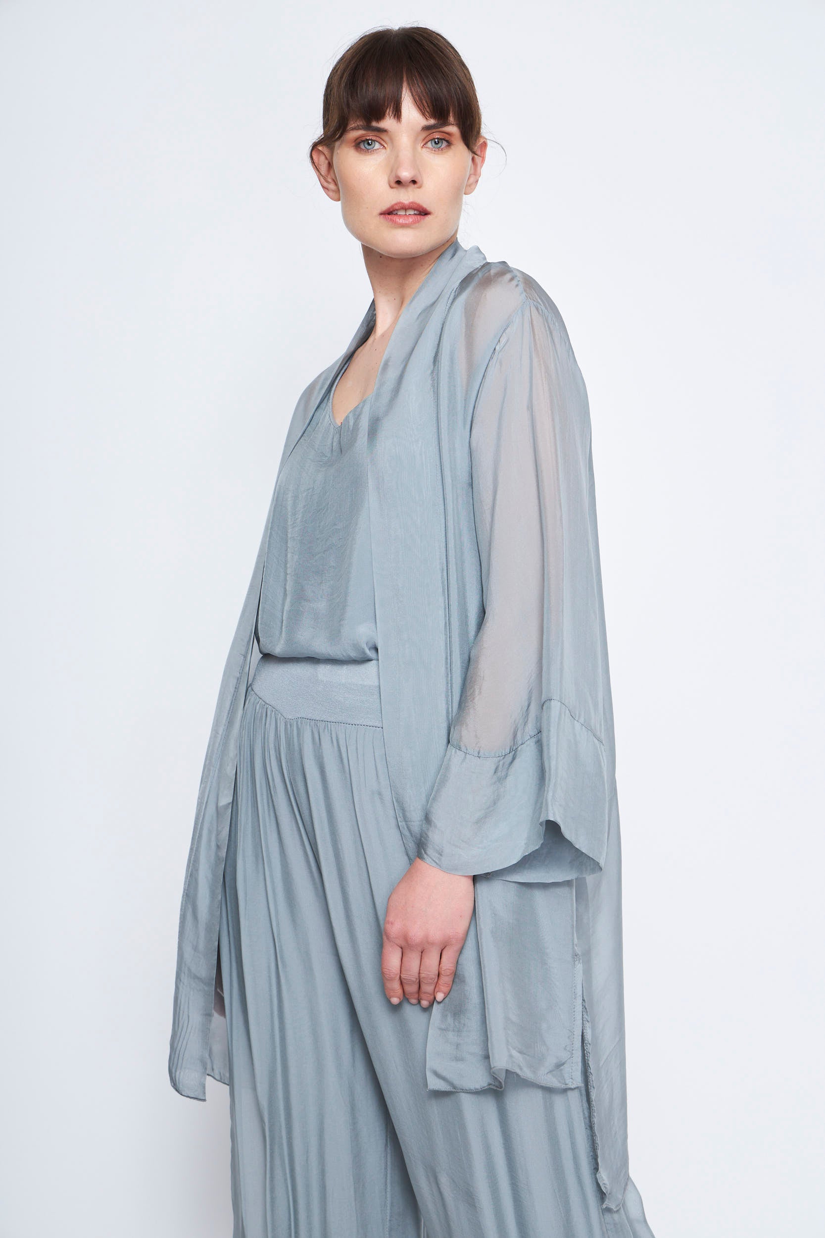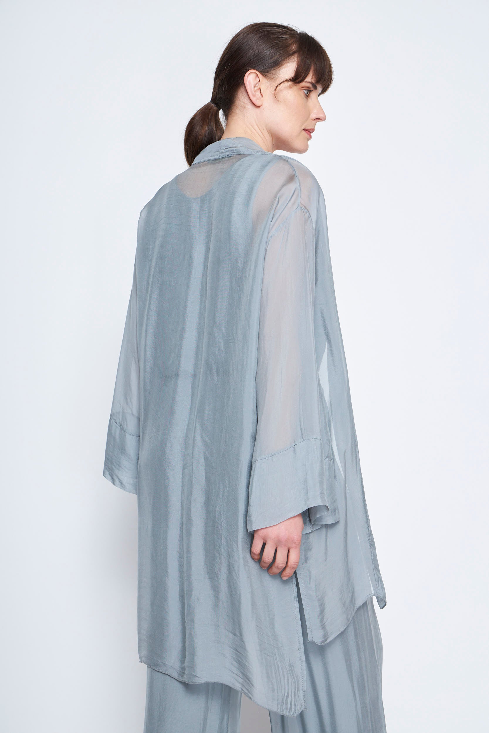 - Descripción: Este spolverino fluido de manga larga es la prenda perfecta para añadir un toque de elegancia y sofisticación a cualquier conjunto. Su diseño ligero y su caída natural lo convierten en una opción versátil para diversas ocasiones.