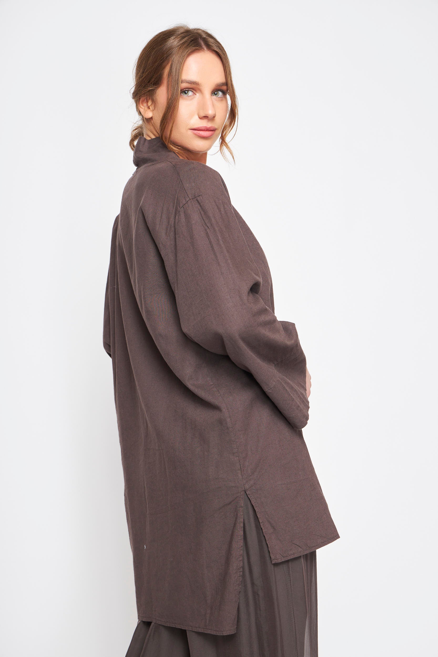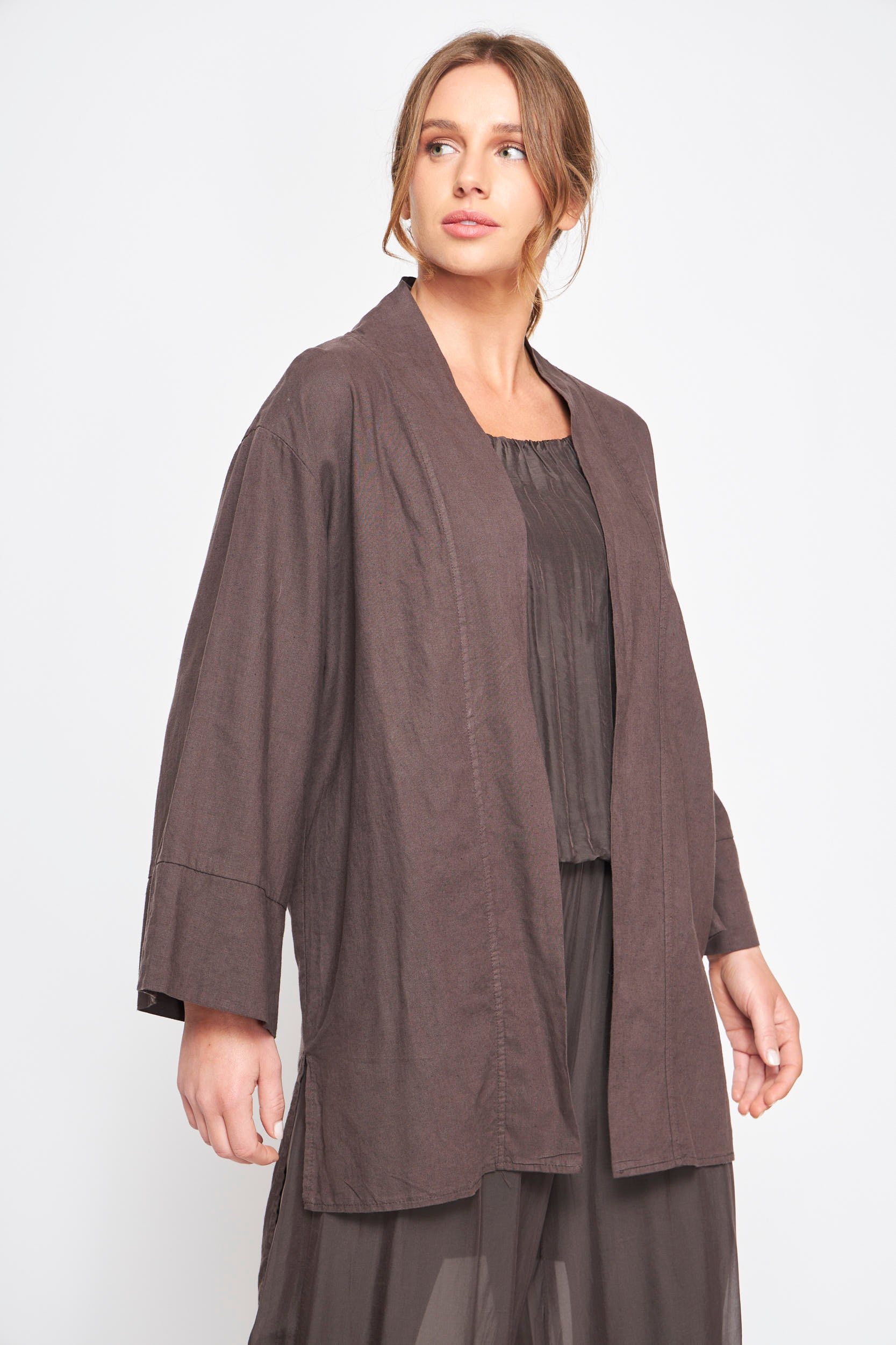 • Descripción: Este elegante spolverino de lino es la prenda perfecta para cualquier ocasión. Con su diseño de manga larga y un corte más largo en la parte trasera, ofrece un estilo sofisticado y moderno. Los cortes a los costados añaden un toque de dinamismo y movimiento.