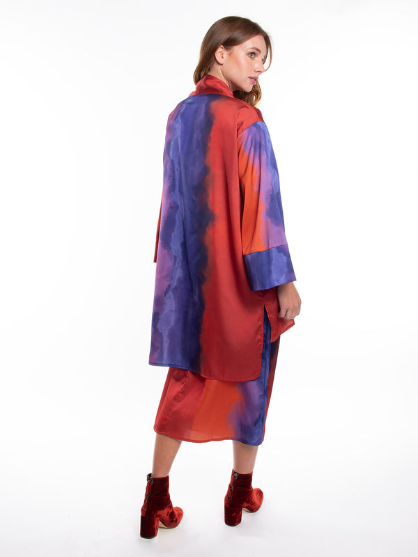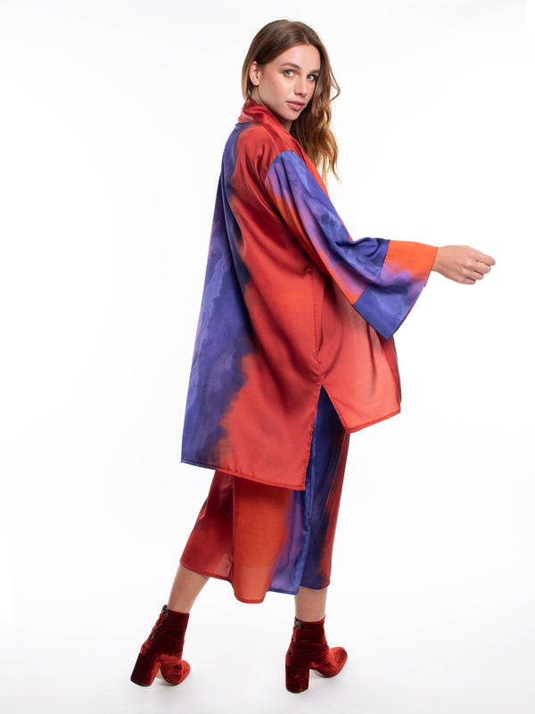 spolverino largo estampado. multicolor.manga ancha.corte recto. ideal para look casual.