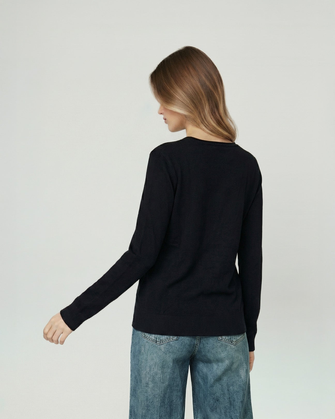 Envuelve tus días de invierno en calidez y estilo con este sweater negro de Lineatre. Su textura suave y diseño atemporal lo convierten en un imprescindible para combinar con pantalones, faldas o denim. Pertenece a la colección Otoño-Invierno 2026 de Lineatre, inspirada en la elegancia natural de la moda italiana y pensada para la mujer que busca verse sofisticada sin esfuerzo.