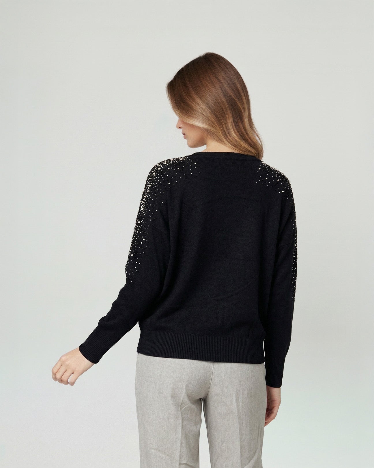 Sweater Mujer Nora Relaxed Cuello Bote Manga Caída Negro Lineatre
