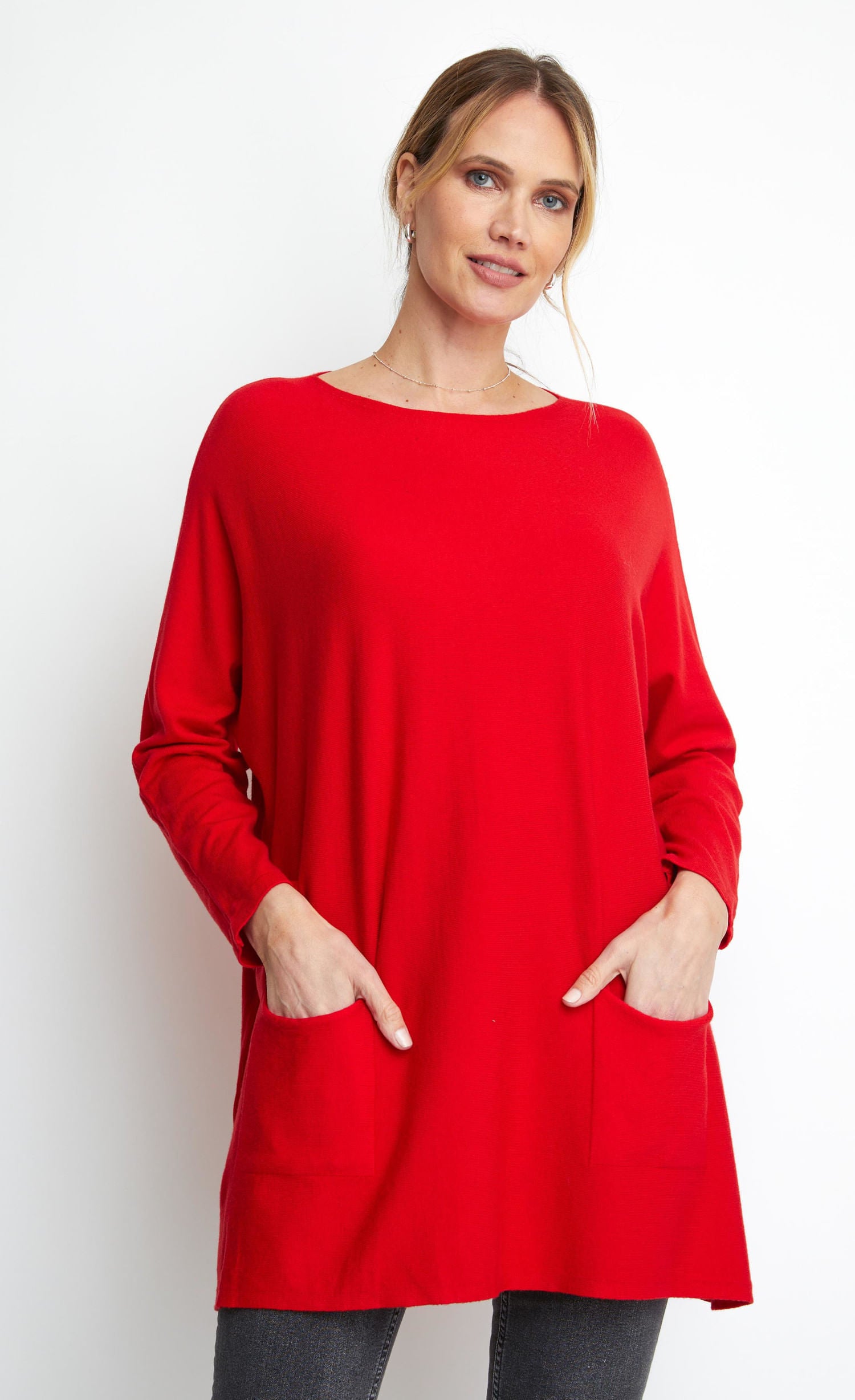 Sweater cerrado, estilo holgado con bolsillos, ideal para looks casuales.