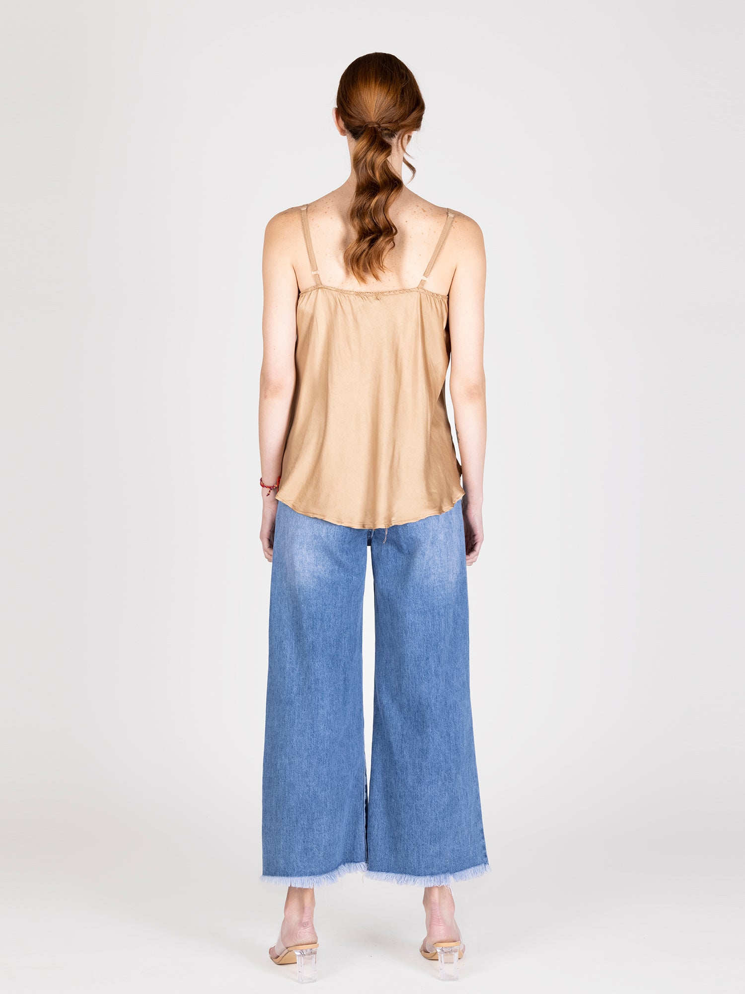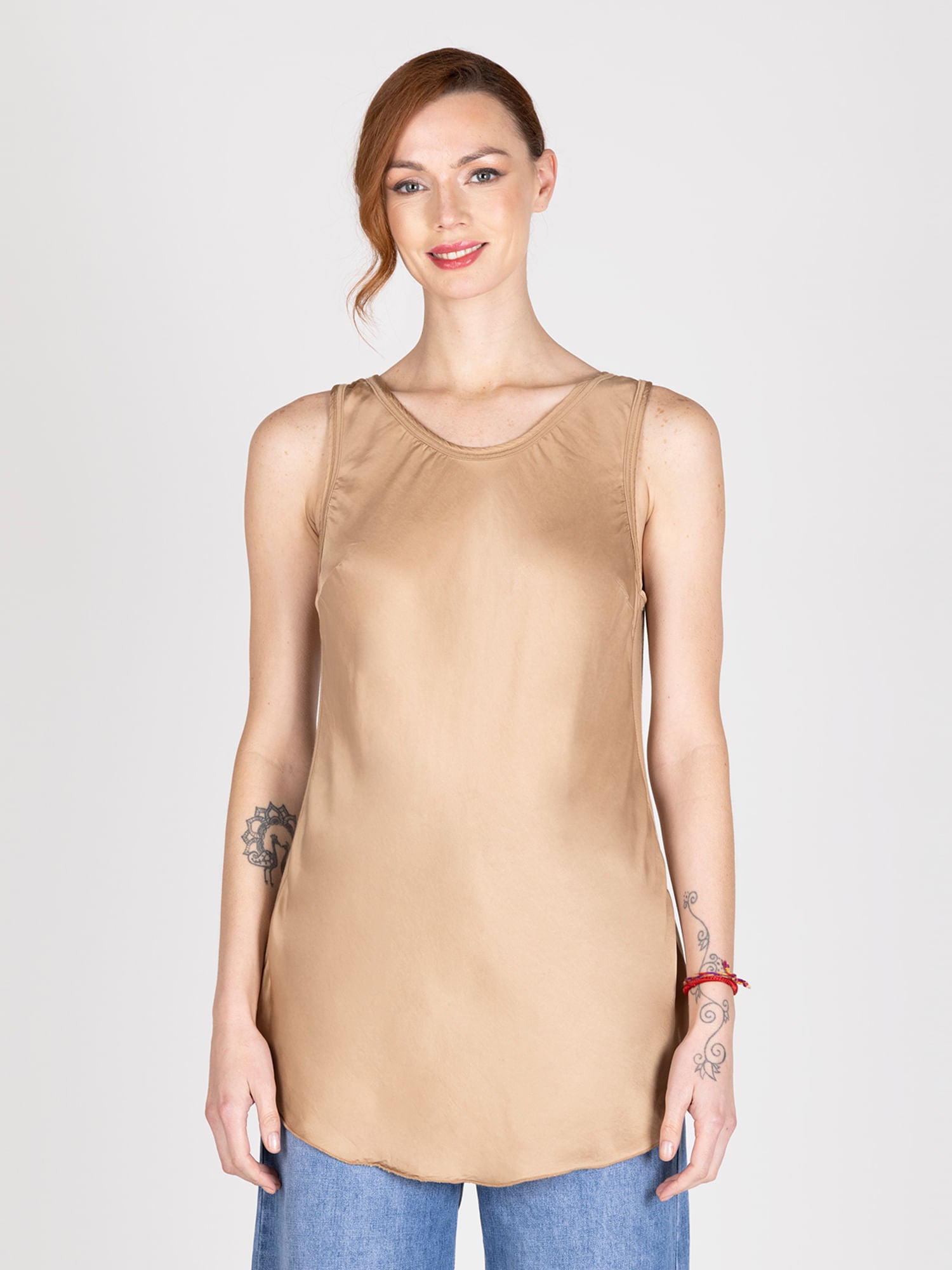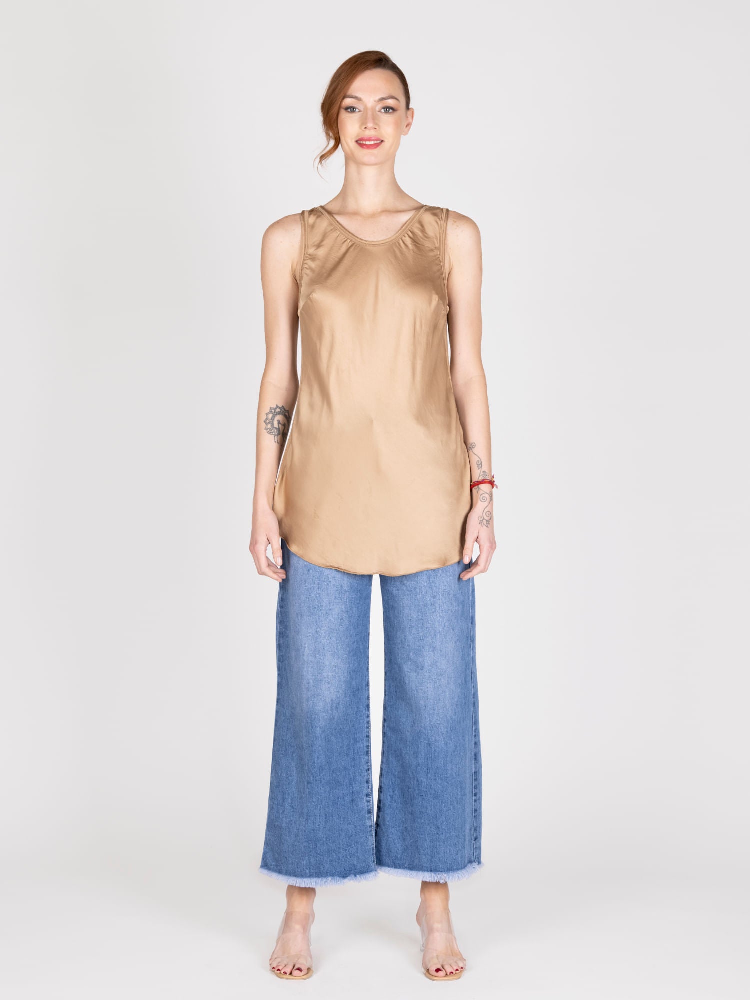 Top básico sin mangas, con efecto satinado. Ideal para cada ocasión